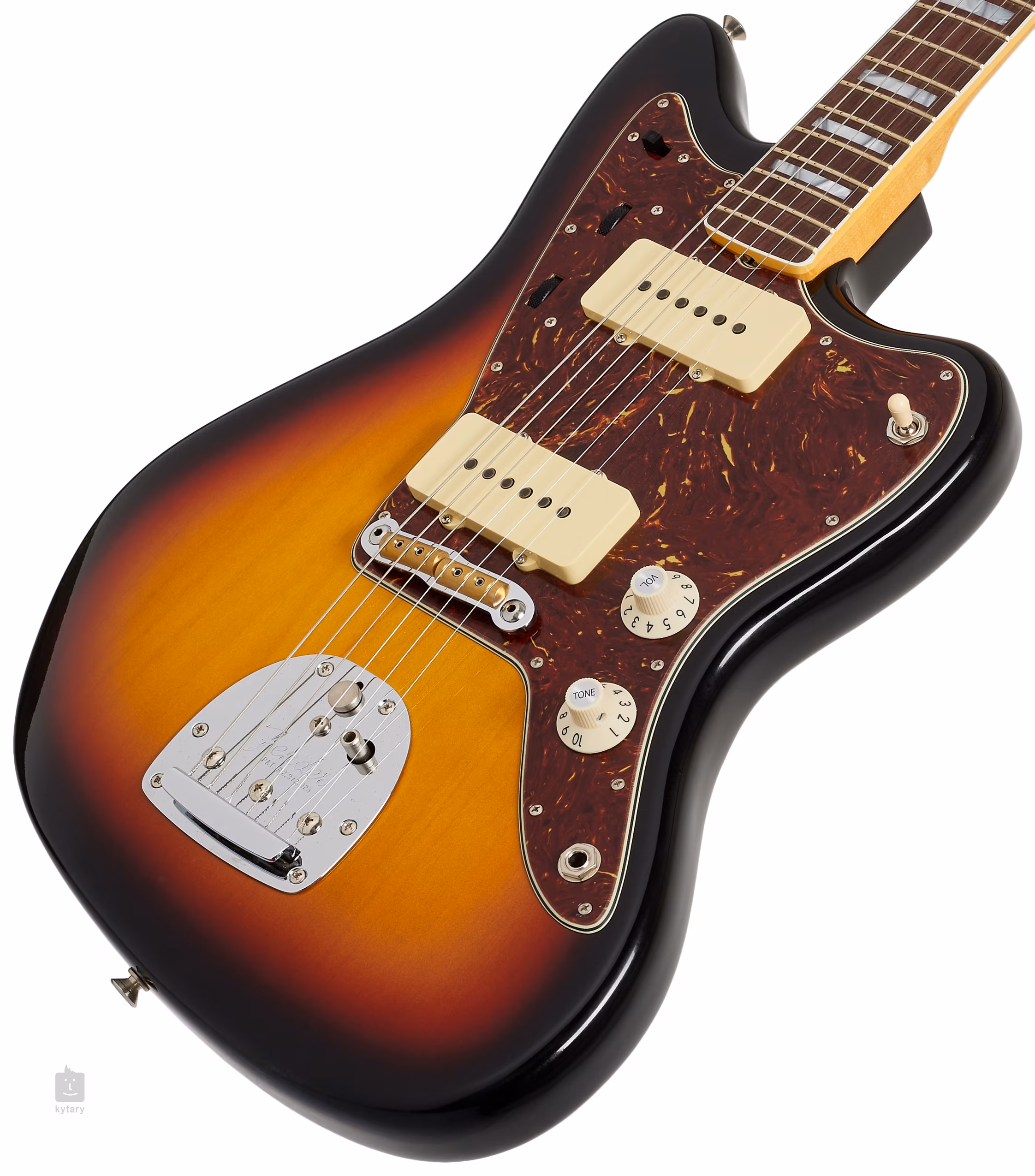 Deux micros à simple bobinage Fender Custom Vintage Jazzmaster, bobinés à la main, et un circuit vintage confèrent à la guitare un son cristallin et équilibré. Ajustez son caractère à l'aide des commandes standard. Les cordes sont maintenues par des mécaniques de style vintage, un chevalet RSD Jazzmaster et un trémolo flottant. La finition élégante est accentuée par un pickguard à quatre couches de coquille brune.