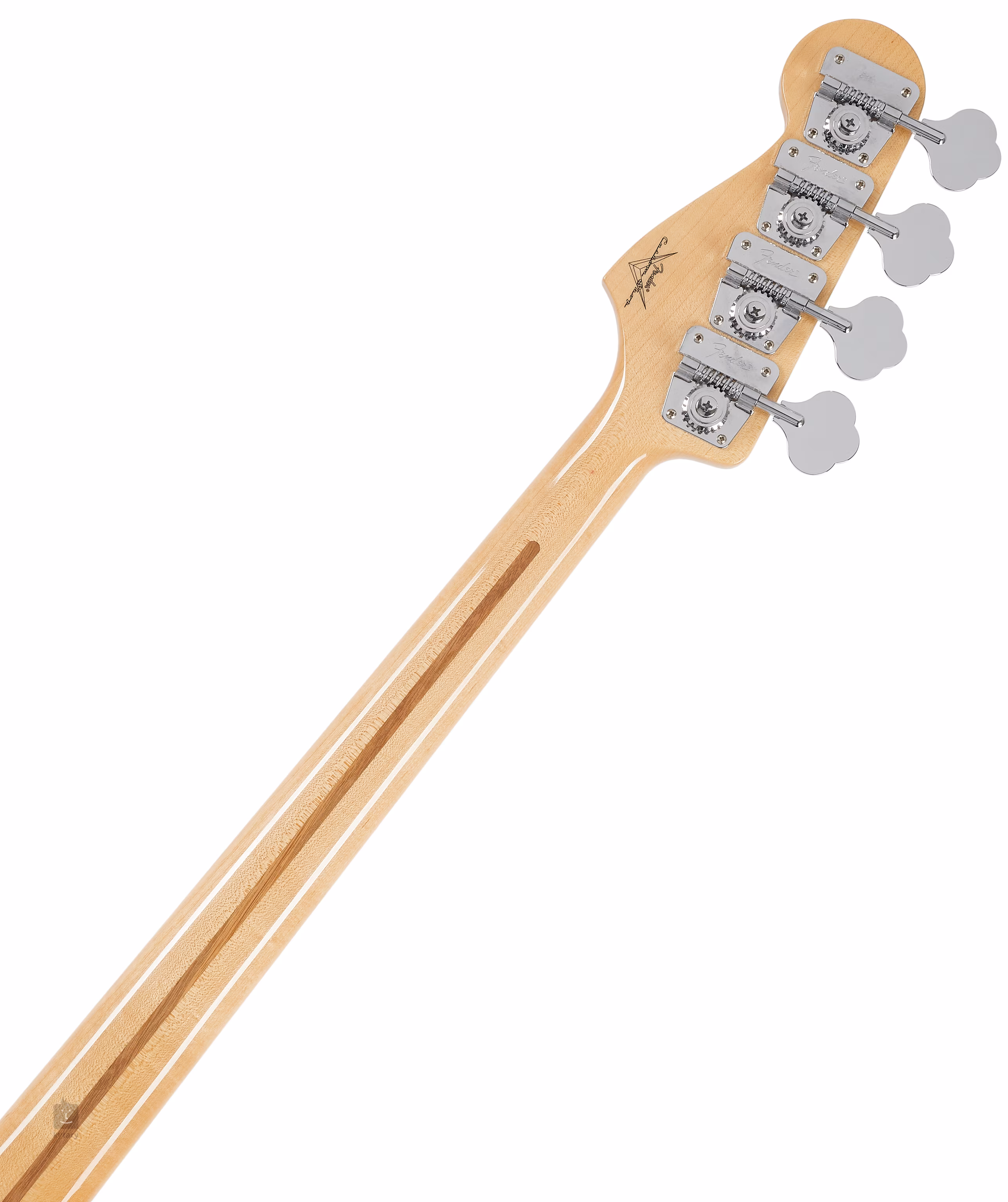 Le corps de la basse est composé de deux pièces de frêne. Le manche en érable offre un profil "75 J-Bass" d'époque, et l'orientation sur la touche en érable est facilitée par des blocs de position spéciaux. Les micros de la 75 J-Bass se chargent du son. Les haut-parleurs standard sont bien sûr standard.