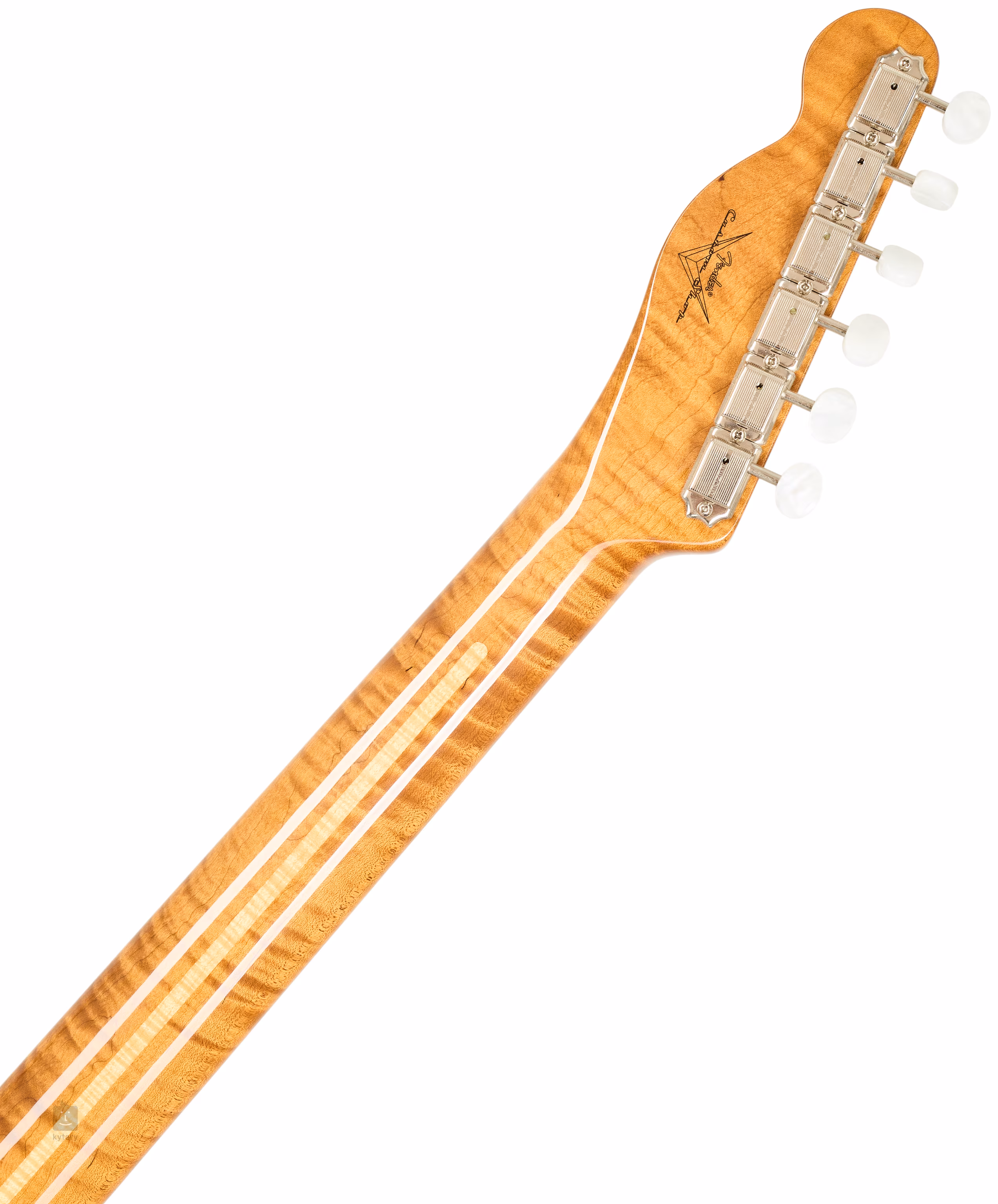 Deux micros à simple bobinage Fender Custom Shop Loaded '51 Nocaster, bobinés à la main, confèrent à la guitare le twang et la sensation d'une Telecaster des années 50. Le caractère du son peut être manipulé à l'aide des potentiomètres de volume, de l'obturateur de tonalité et du commutateur de micro à cinq positions. Les cordes sont maintenues dans des mécaniques de style vintage via une touche en os et une bobine Nocaster 51 avec des sillets en laiton décalés à travers le corps.
