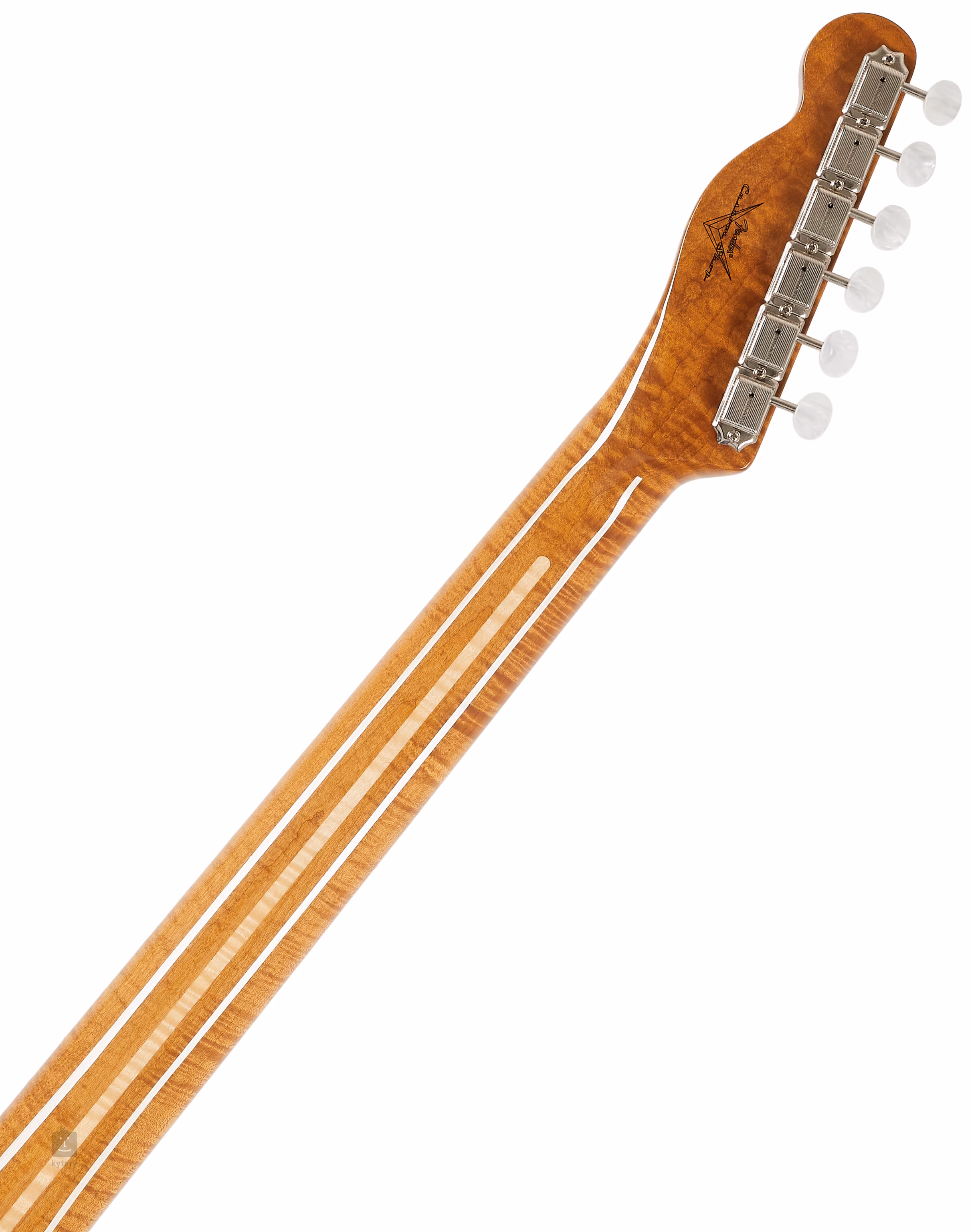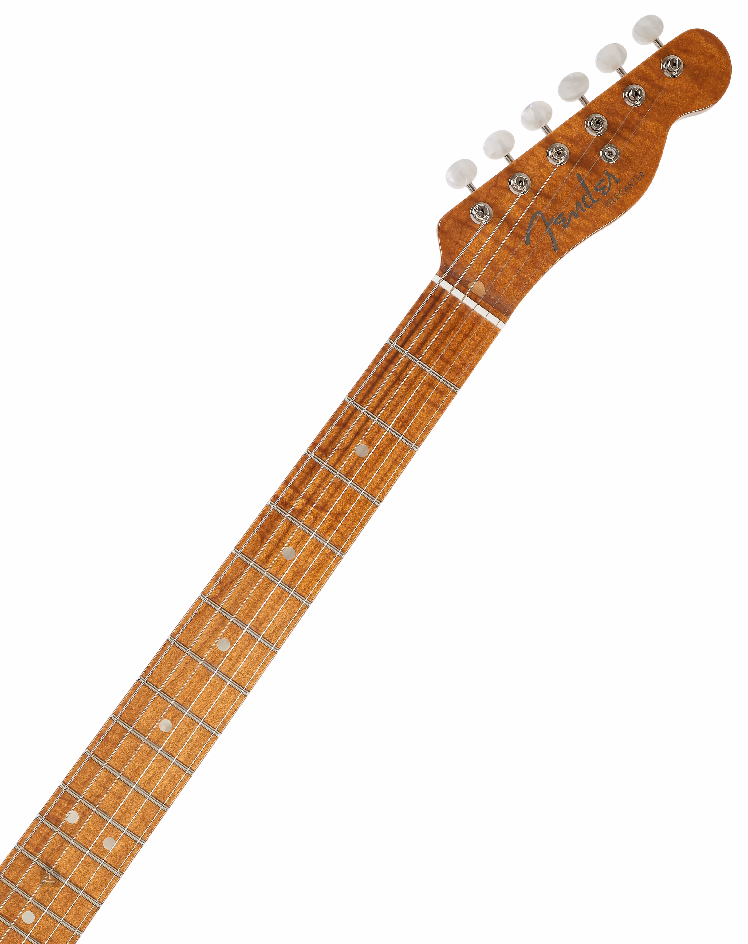 Deux micros à simple bobinage Fender Custom Shop Loaded '51 Nocaster, bobinés à la main, confèrent à la guitare le twang et la sensation d'une Telecaster des années 50. Le caractère du son peut être manipulé à l'aide des potentiomètres de volume, de l'obturateur de tonalité et du commutateur de micro à cinq positions. Les cordes sont maintenues dans des mécaniques de style vintage via une touche en os et un manche Nocaster 51 avec des sillets en laiton décalés à travers le corps. La finition élégante est accentuée par un pickguard en aluminium anodisé noir.