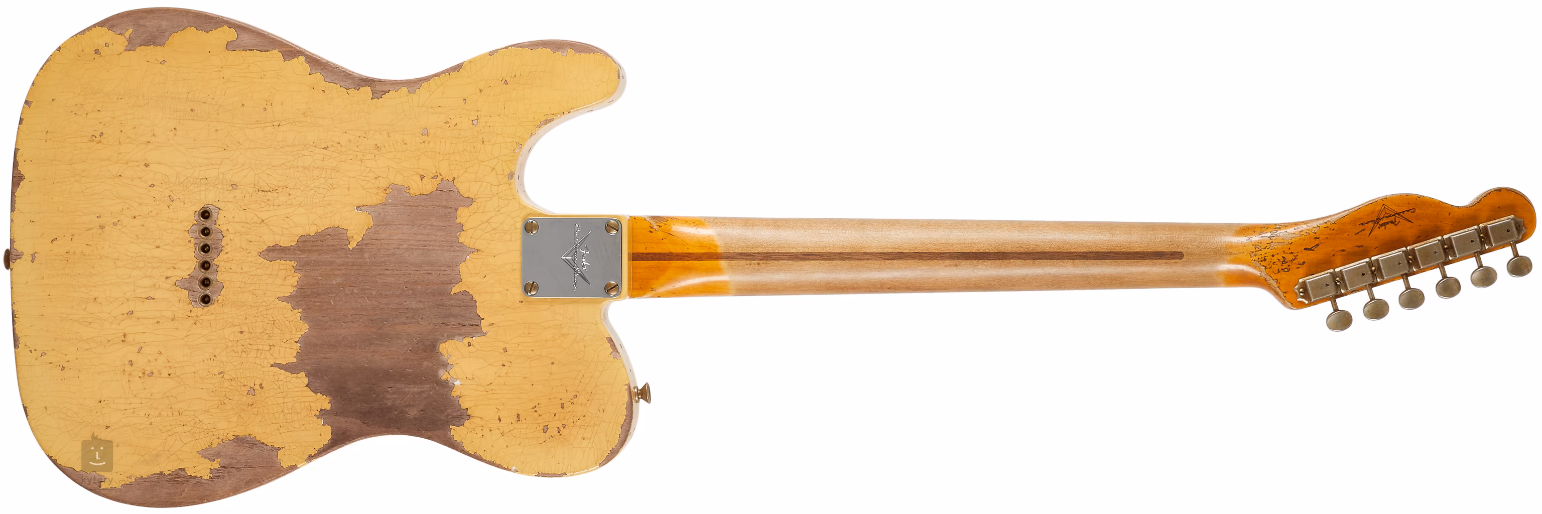 La B2 52 TELECASTER SUPHREL - ANBL est une élégante Telecaster Blackguard du Fender Custom Shop. Le corps de la guitare est fabriqué à partir de deux morceaux de frêne sélectionnés. La finition Super Heavy Relic offre des éléments distinctifs de fausse patine sous la forme de cicatrices de combat et d'éraflures, de laque rayée et d'accessoires vieillis. Cette finition donne l'impression que la guitare a connu de nombreuses années sauvages et profanes, même s'il s'agit bien sûr d'un instrument flambant neuf. Le manche en érable d'une seule pièce (rift sawn) présente un profil en "V" souple d'époque 1957 et un rayon combiné (7,25 - 9,5 pouces). La touche est équipée de 21 frettes Narrow Tall (6105).