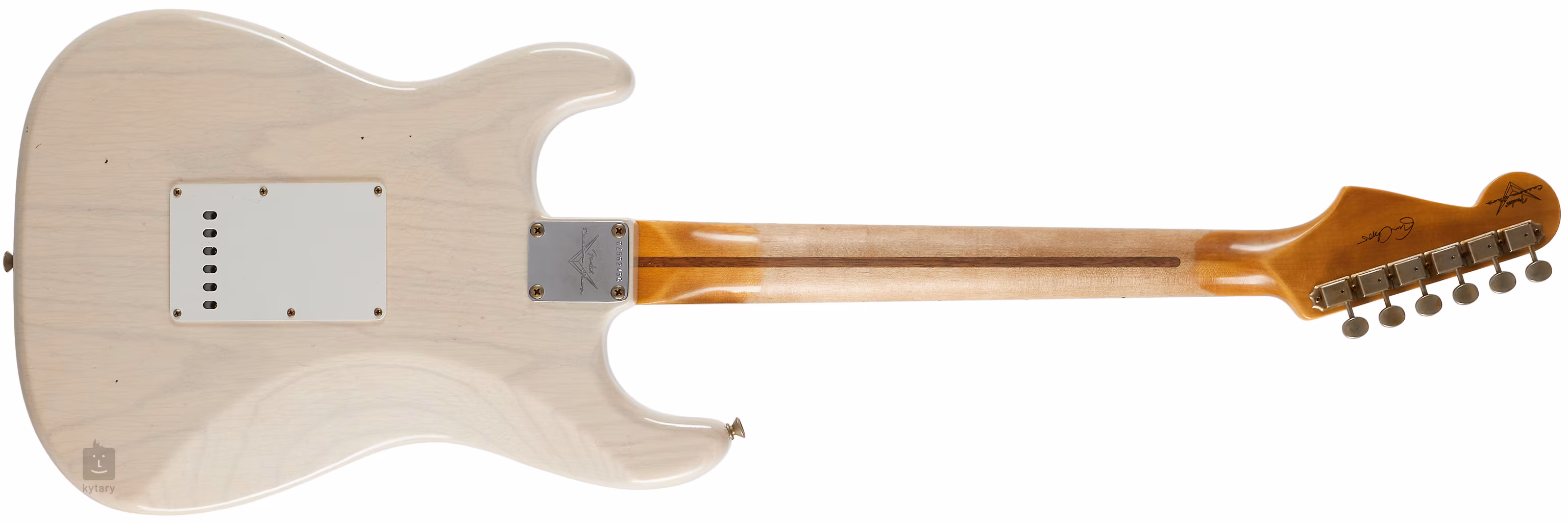 Les cordes sont montées sur des mécaniques de style vintage et un trémolo American Vintage verrouillé. Le style est accentué par un pickguard Eggshell simple couche et la signature d'Eric Clapton sur la tête de manche.
