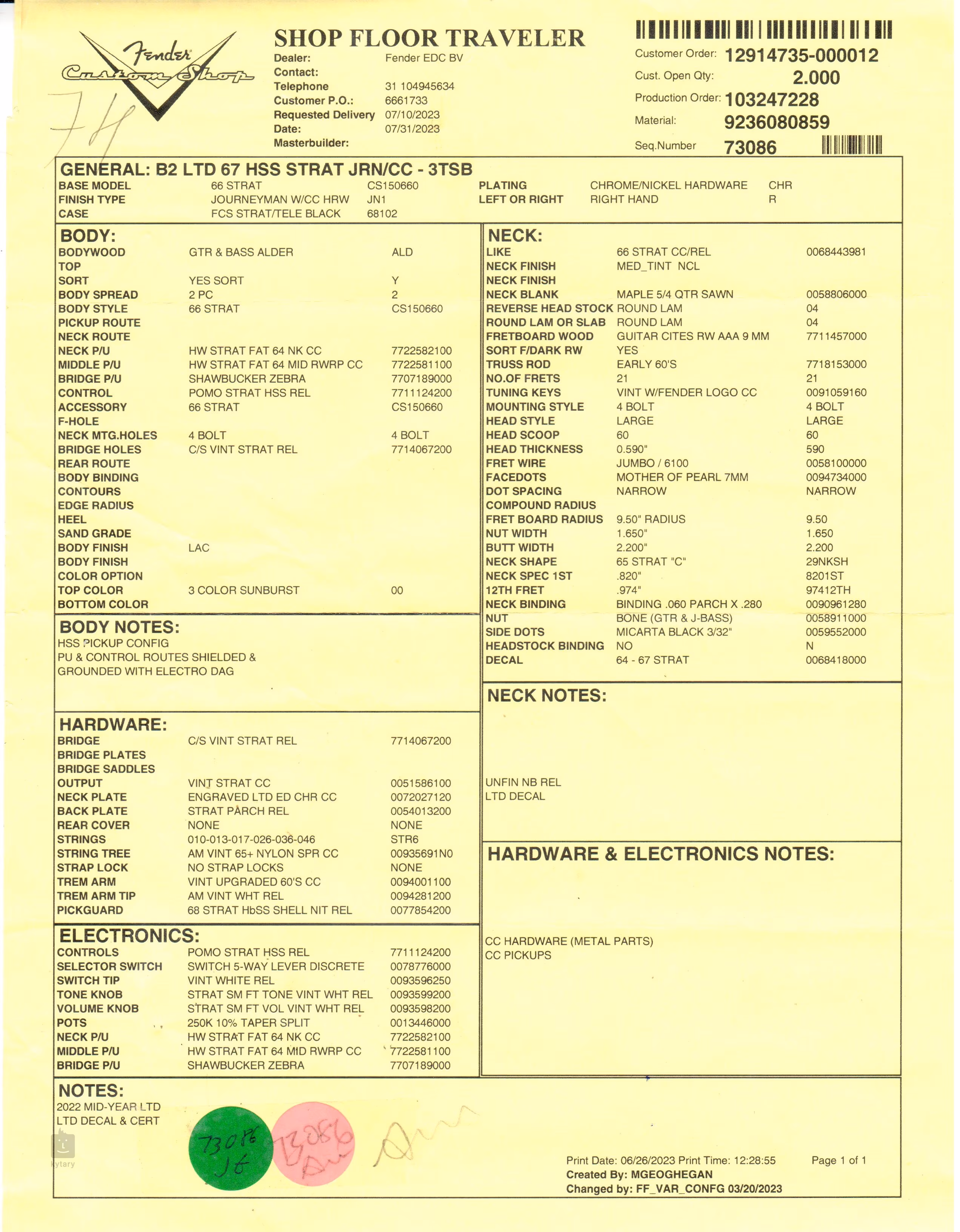 La guitare est livrée dans un étui (Deluxe Hardshell) avec une sangle et un certificat d'authenticité.
