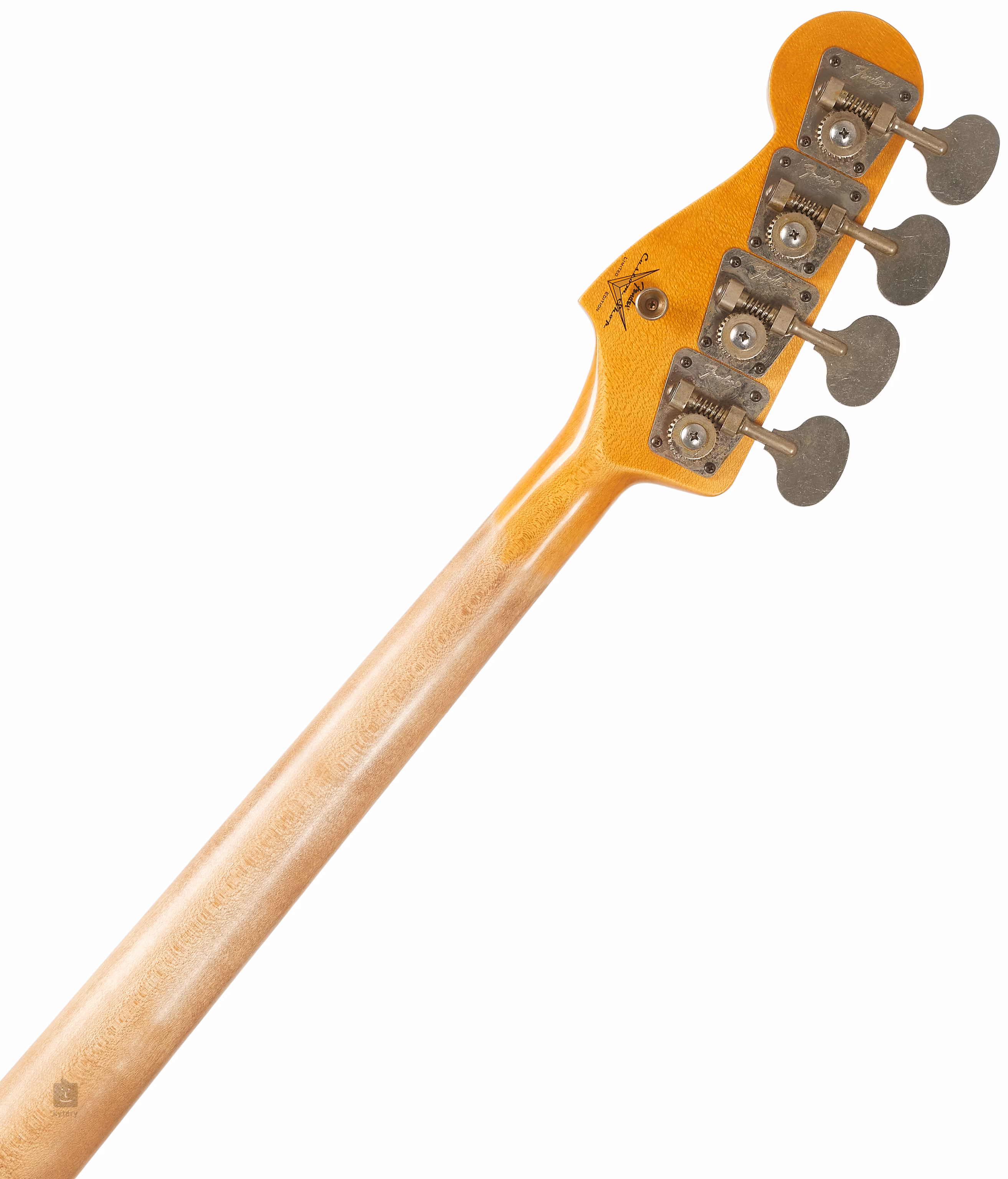 Deux micros bobinés à la main se chargent du son de l'instrument - une tête de Jazz Bass '75 et un manche de Precision Bass '65-'70. Le son peut être manipulé à l'aide de deux commandes de volume et d'un potentiomètre de diaphragme de tonalité. Les cordes sont montées sur des mécaniques "Lollipop" de style vintage et un cordier RSD Hi-Mass. Le look élégant est accentué par un pickguard en écaille de tortue.