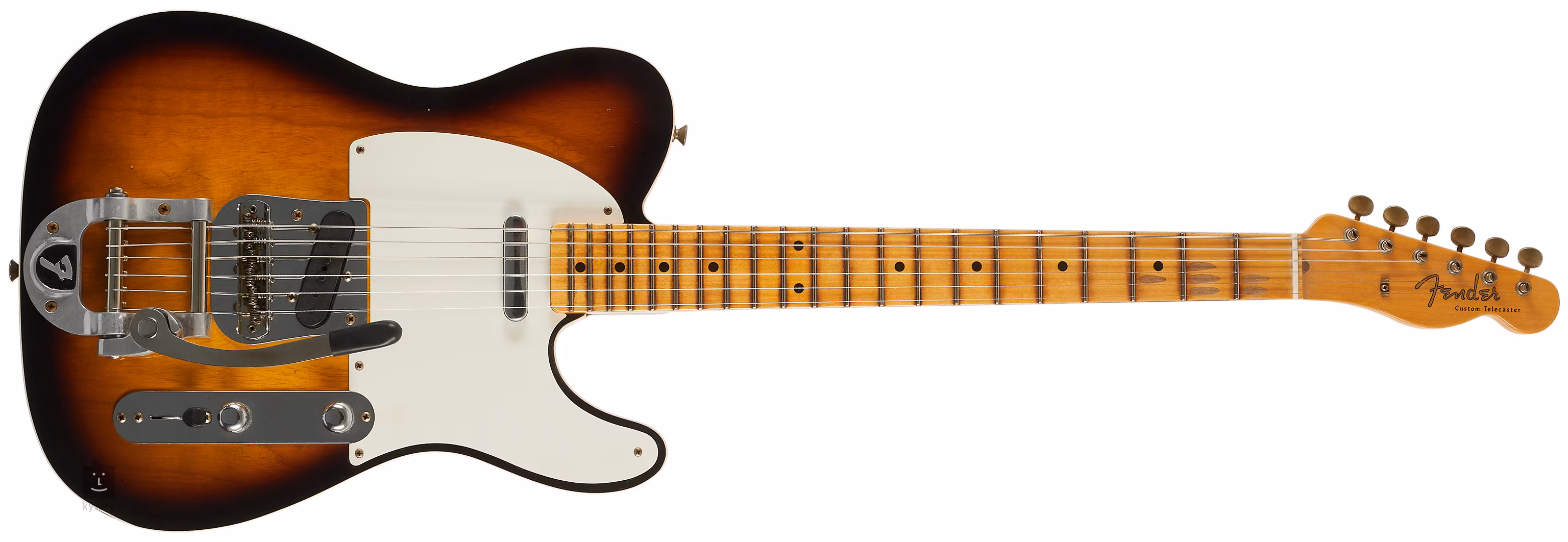 Les micros Twisted Tele du Custom Shop, bobinés à la main, confèrent à la guitare un son de guitare Telecaster très chaud et à haut rendement, avec une touche de caractère Strat. L'électronique Fat '50s offre un son légèrement plus épais, et la réponse des commandes de volume et de tonalité est précise et régulière, sans la perte typique d'aigus lorsque l'on baisse le volume. La rotation de la plaque de contrôle conviendra particulièrement aux musiciens qui travaillent souvent avec le potentiomètre de volume lorsqu'ils jouent.
