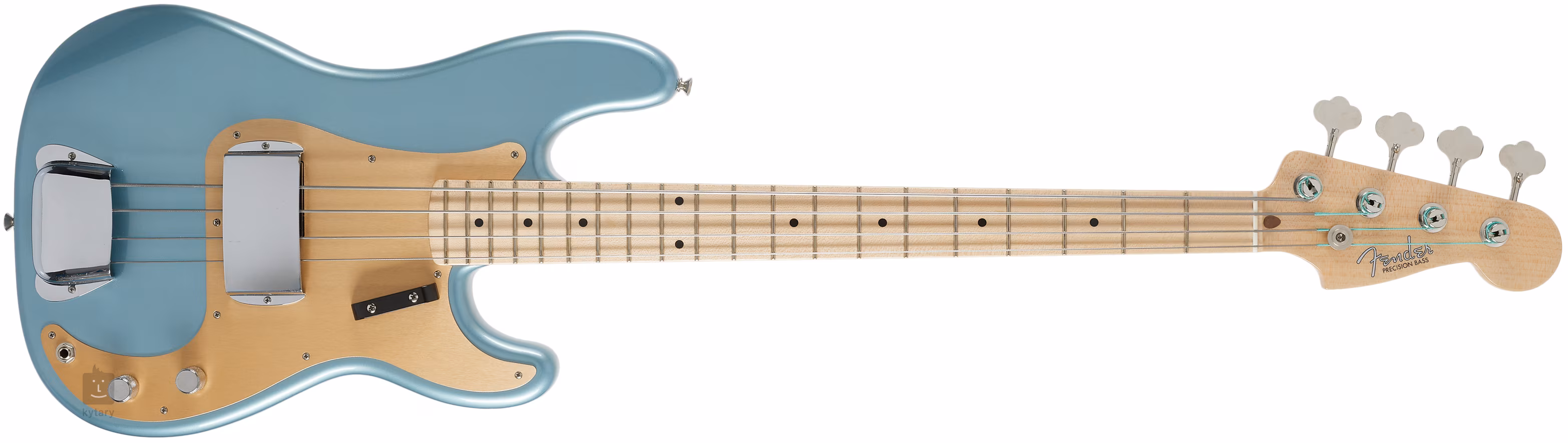 Le corps de la basse est fabriqué à partir de deux pièces d'aulne. La périodicité de l'instrument est soulignée par la finition NOS (New Old Stock), une finition authentique entièrement nouvelle sur les originaux des années 50 et 60, sans les éléments de patine artificielle et les signes de vieillissement sous la forme d'une laque décolorée. Et puis, il est impossible de remonter le temps ! Le manche en érable d'une seule pièce (quartersawn) présente un profil en "V doux" de 57 et la touche est équipée de vingt frettes Medium Vintage (47095).
