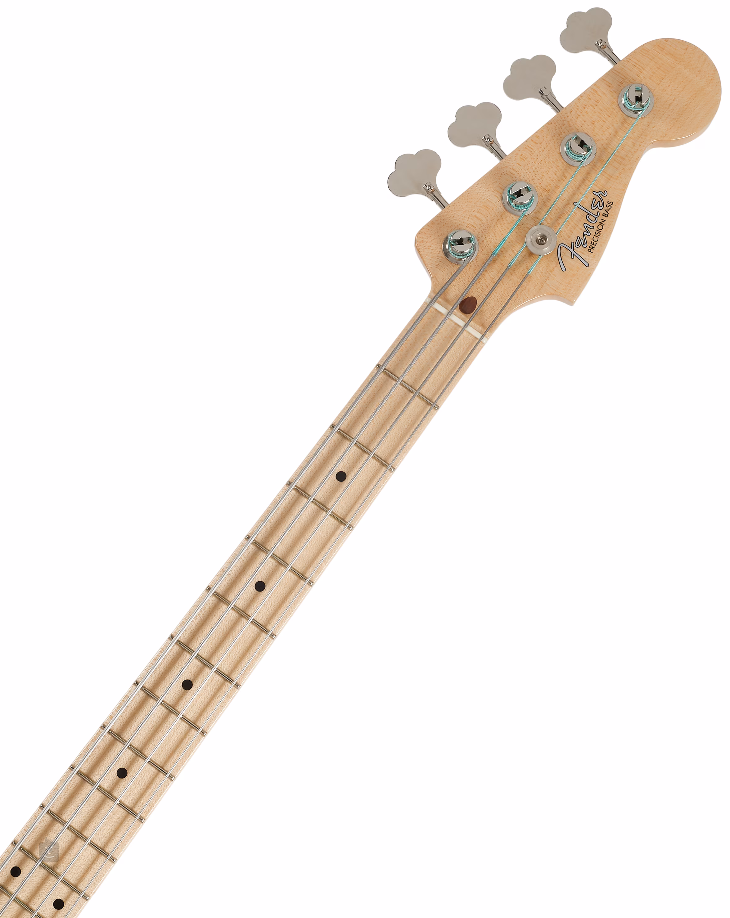 Le corps de la basse est fabriqué à partir de deux pièces d'aulne. La périodicité de l'instrument est soulignée par la finition NOS (New Old Stock), une toute nouvelle finition authentique sur les originaux des années 50 et 60 sans les éléments de patine artificielle et les signes de vieillissement sous la forme d'une laque décolorée. Et puis, il est impossible de remonter le temps ! Le manche en érable d'une seule pièce (quartersawn) présente un profil en "V doux" de 57 et la touche est équipée de vingt frettes Medium Vintage (47095).