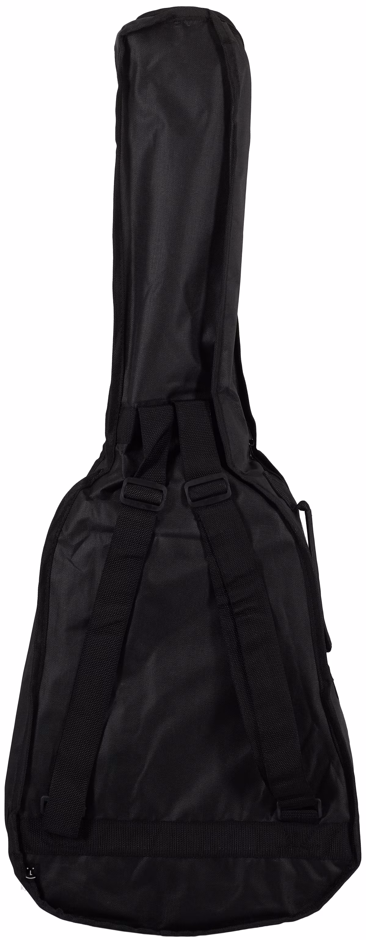 Les cordes sont maintenues dans la mécanique chromée Die-Cast de la société et la touche en noyer par une frette zéro en plastique et un sillet compensé. L'aspect élégant de l'instrument est accentué par des éléments traditionnels sous la forme d'un corps noir et d'un bord de touche ou d'une rosette composée de lignes noires et blanches et d'un anneau d'imitation de nacre. La guitare est livrée dans un sac de transport.