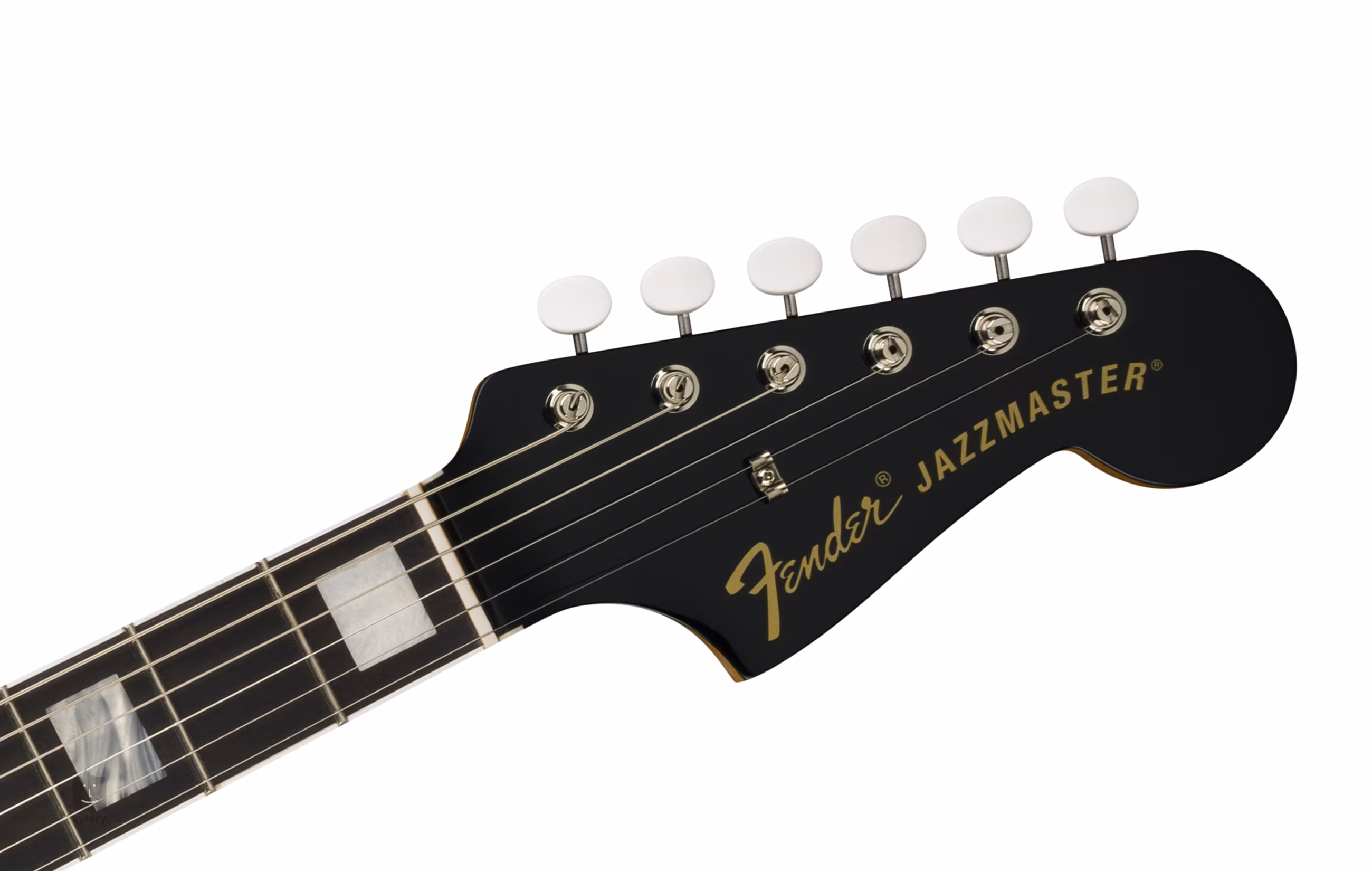 Le corps de la Gold Foil Jazzmaster EB CAB est en acajou. Un manche en érable avec un profil en "C" du milieu des années 60 est collé à une touche en ébène équipée de 21 frettes "Narrow Tall". L'orientation sur la surface de la touche est facilitée par des blocs de position en imitation de nacre.