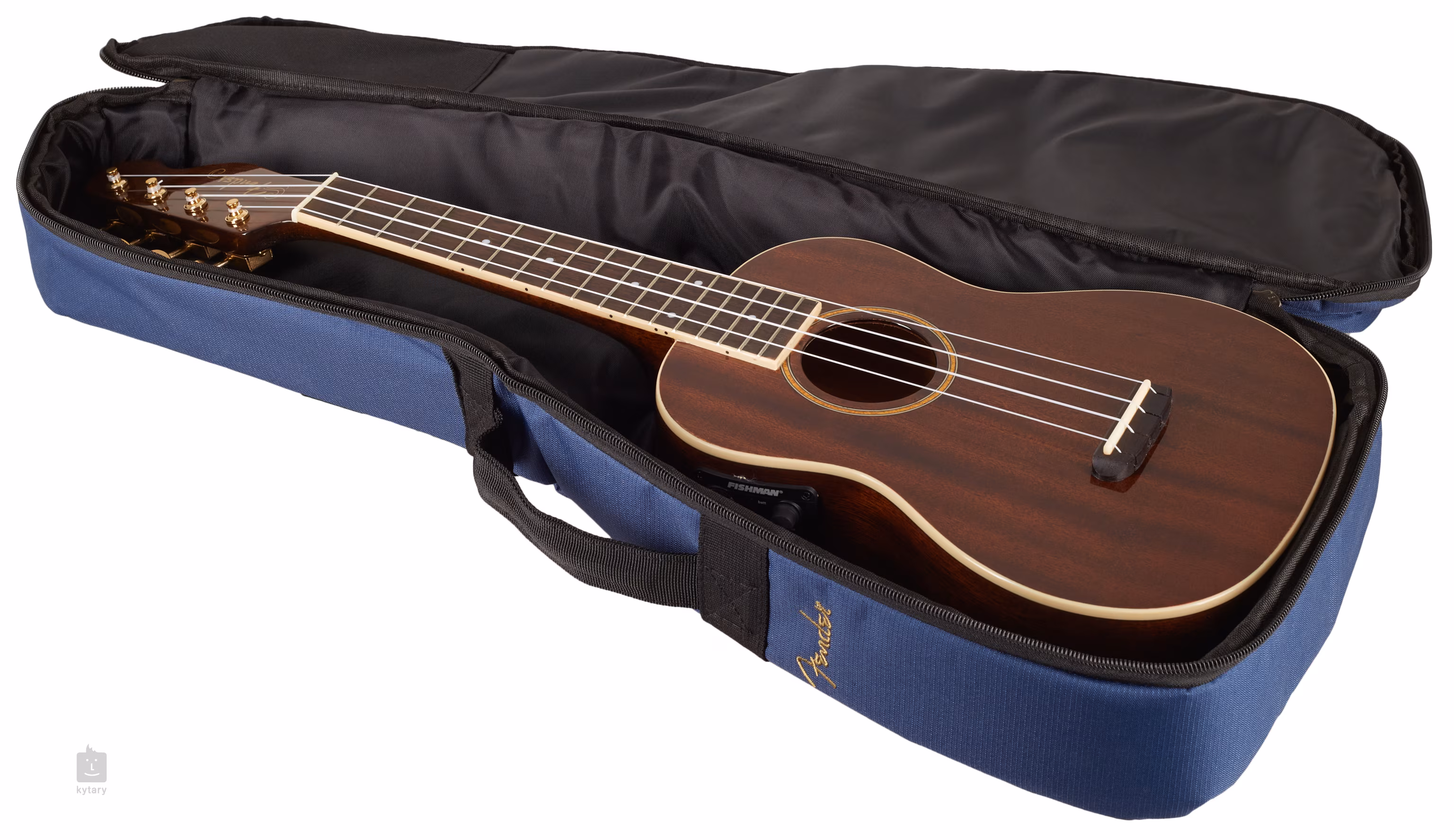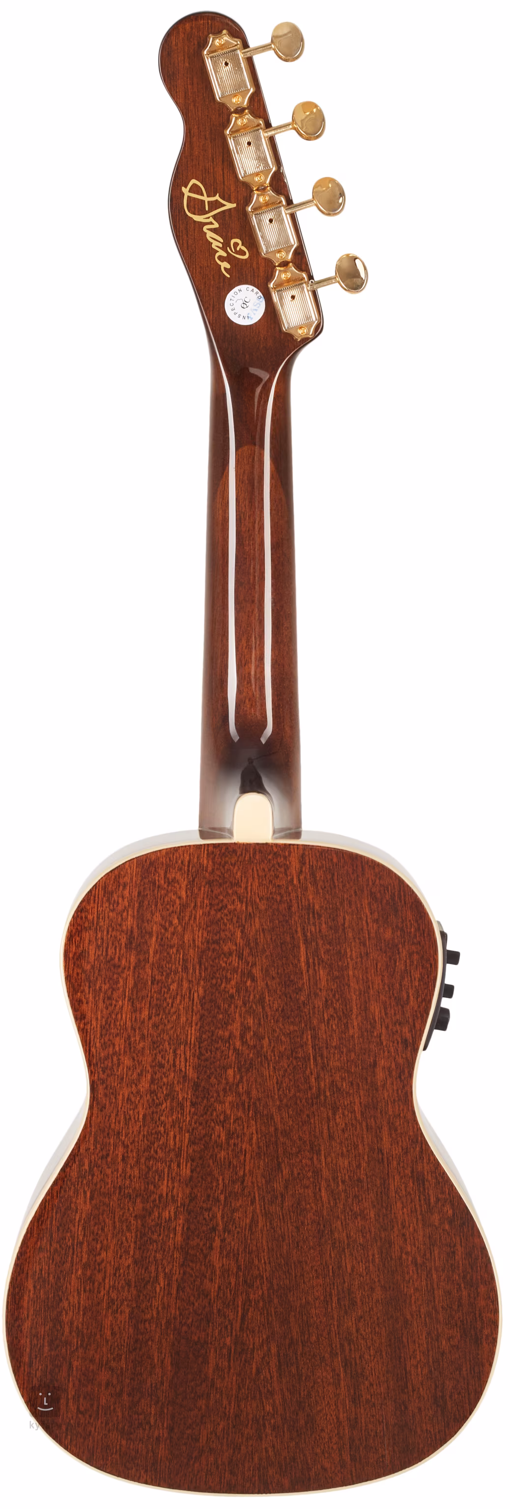 Le ukulélé de concert de Grace VanderWaal représente une étape intermédiaire entre les petits modeles soprano et les grands modeles ténor. Son corps est en sapélé. Une touche en noyer équipée de seize frettes est collée sur un manche en bois de nato. Les éléments typiques des instruments Fender sont représentés par une tete en forme de Telecaster avec une disposition des lignes de 4 pouces.
