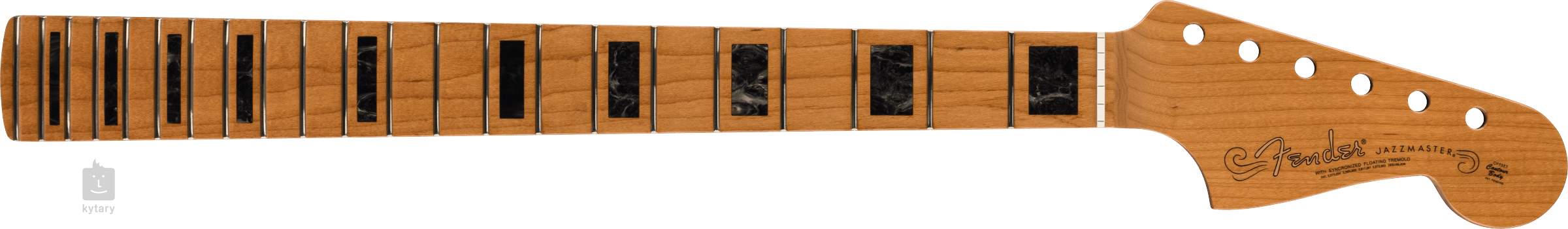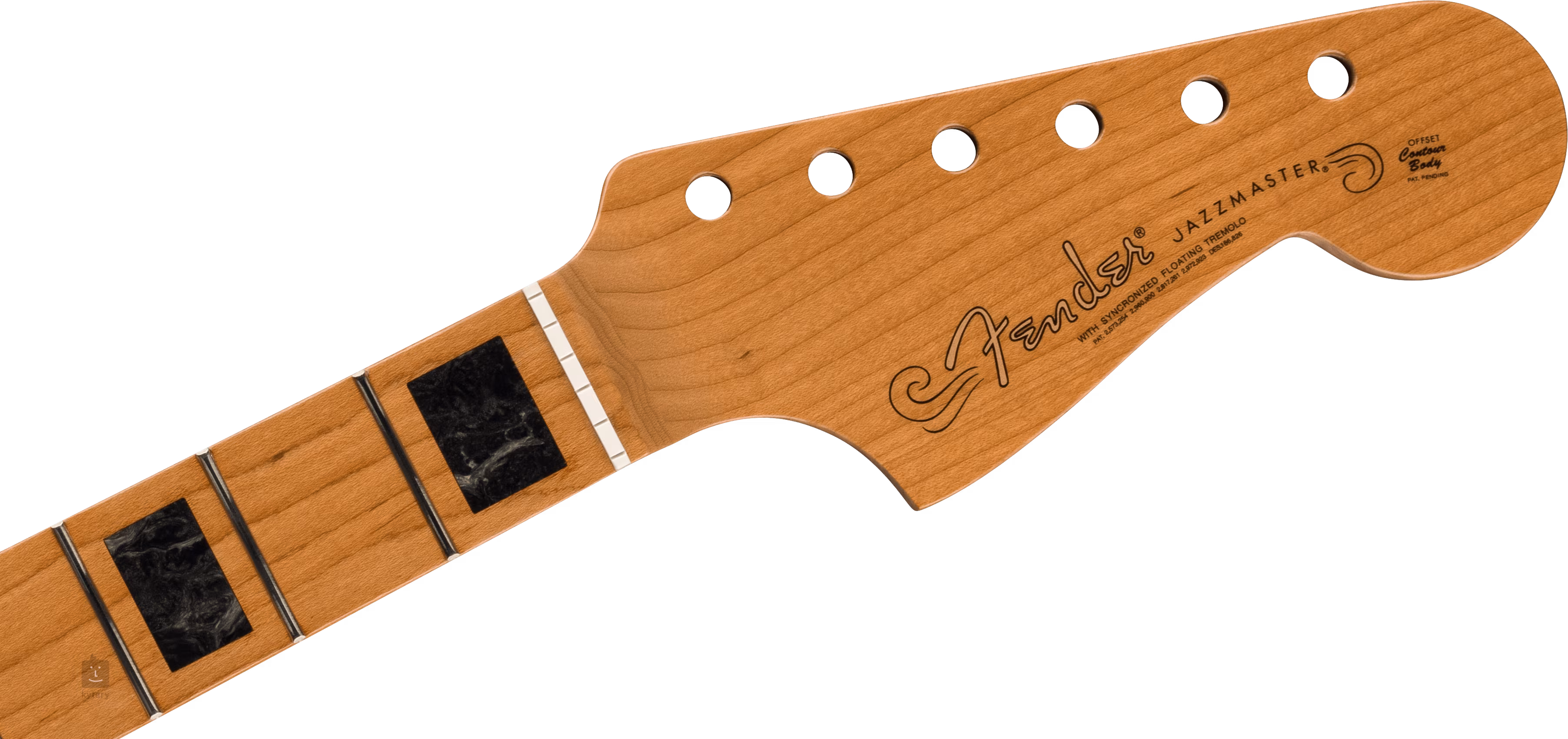 Fender Roasted Jazzmaster Neck, Block Inlays, 22 Medium Jumbo Frets, 9.5" Radius, Maple Modern C Shape est un manche conçu pour les guitares Jazzmaster. Il est en érable, doté d'une touche en érable, de 22 frettes et d'un manche en os synthétique. Quatre vis sont utilisées pour le fixer à l'instrument.