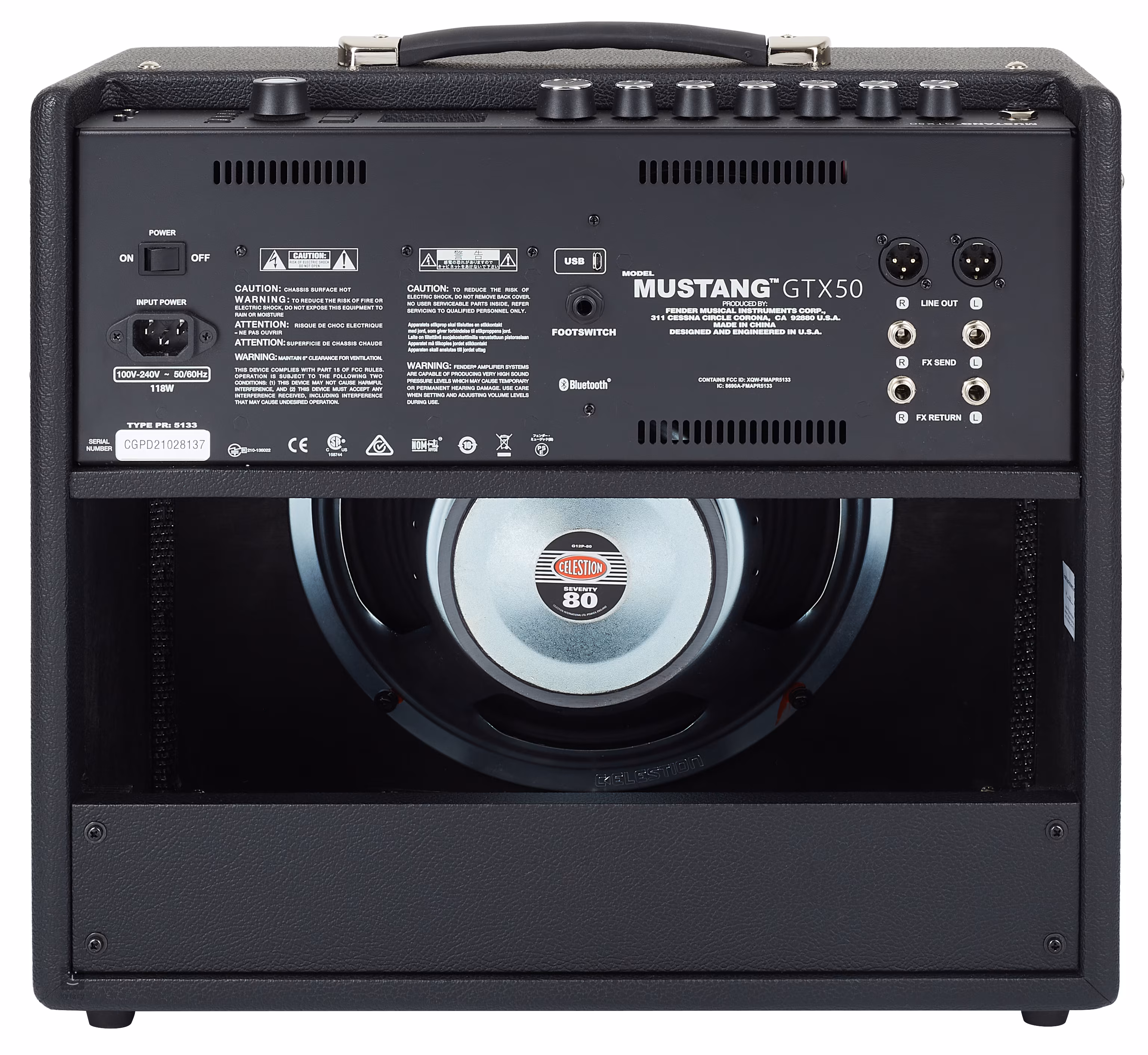 Le GTX50 offre 40 simulations de guitare - des classiques de Fender comme la Blues Jr. Et Vibro King aux amplis métalliques modernes, des dizaines de superbes effets de guitare et 200 présélections qui couvrent soniquement un large éventail de genres musicaux (country, rock, pop, R&B, jazz, métal). L'interface conviviale et l'écran LCD clair constituent une plate-forme idéale pour éditer facilement les préréglages, trier les effets dans le chemin du signal et effectuer d'autres tâches standard. De plus, l'appareil est équipé d'une connectivité WiFi et d'une compatibilité Bluetooth, ce qui vous permet de télécharger des mises a jour et des presets directement depuis le cloud Fender ou via l'application mobile Fender Tone 3.0 (l'application permet de modifier et de sauvegarder les presets), et bien sur, dans le cas du Bluetooth, de diffuser votre musique préférée. Un haut-parleur Celestion de 12 pouces vous offre un son riche dans une gamme dynamique complete.