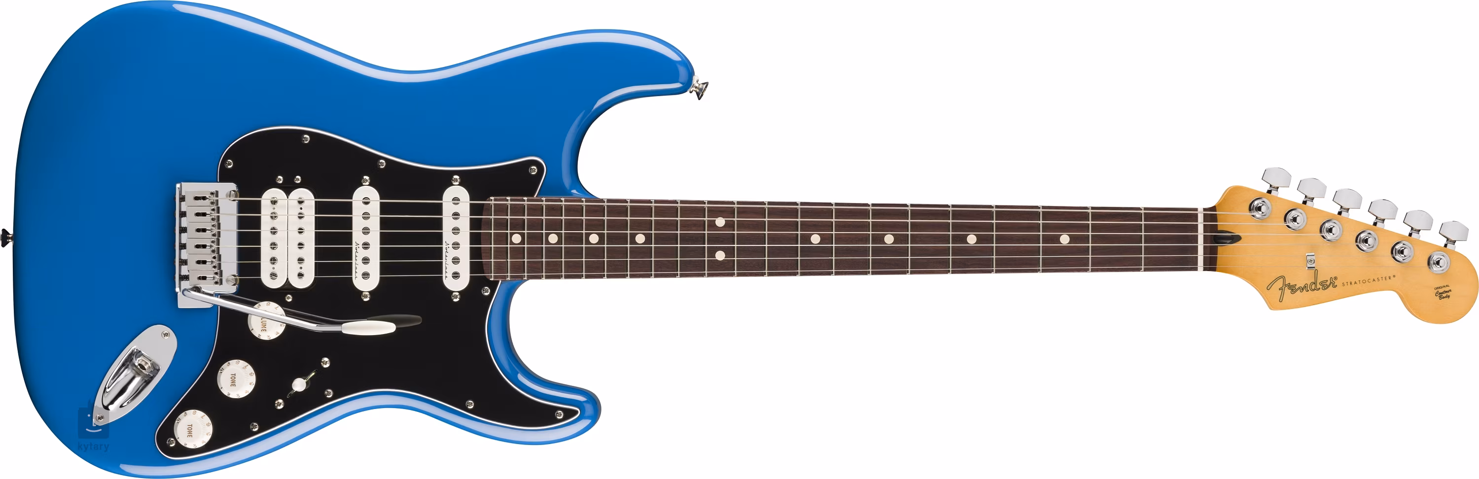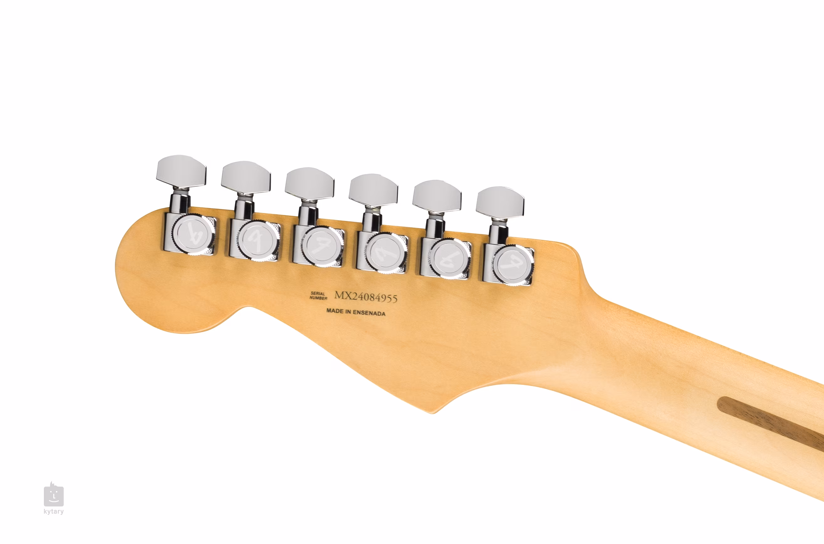 Une autre nouveauté de la gamme est l'utilisation d'accordeurs Fender Sealed Locking et d'un manche en TusQ (le manche de la gamme standard est en faux os). Les cordes sont ancrées dans un trémolo synchronisé à 2 points avec des sillets en acier et un bloc de trémolo biseauté. Le look élégant de la guitare est accentué par le pickguard noir à 3 plis et la finition Electric Blue.