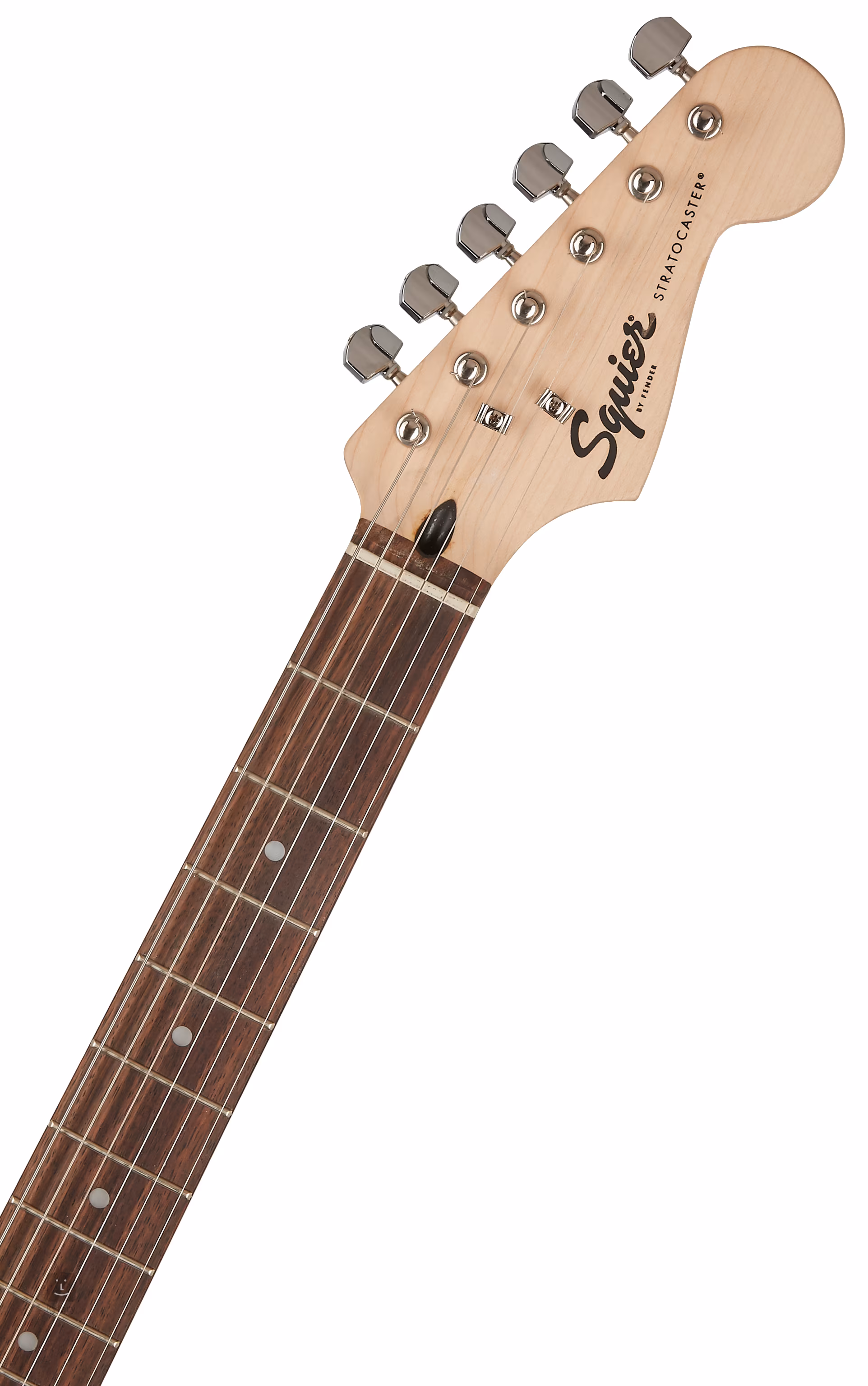 Le corps en peuplier de l'instrument est recouvert d'une laque polyuréthane brillante. Le manche en érable est collé a une touche en laurier indien avec vingt et une frettes Medium Jumbo. L'orientation est facilitée par des points de position blancs classiques. Un potentiometre de volume et deux potentiometres de tonalité sont utilisés pour les corrections sonores, et la commutation entre les micros peut se faire a l'aide d'un commutateur a cinq positions. Le look traditionnel des guitares Stratocaster est complété par des éléments chromés, des mécaniques moulées, un pickguard blanc et le logo de la société sur la tete.