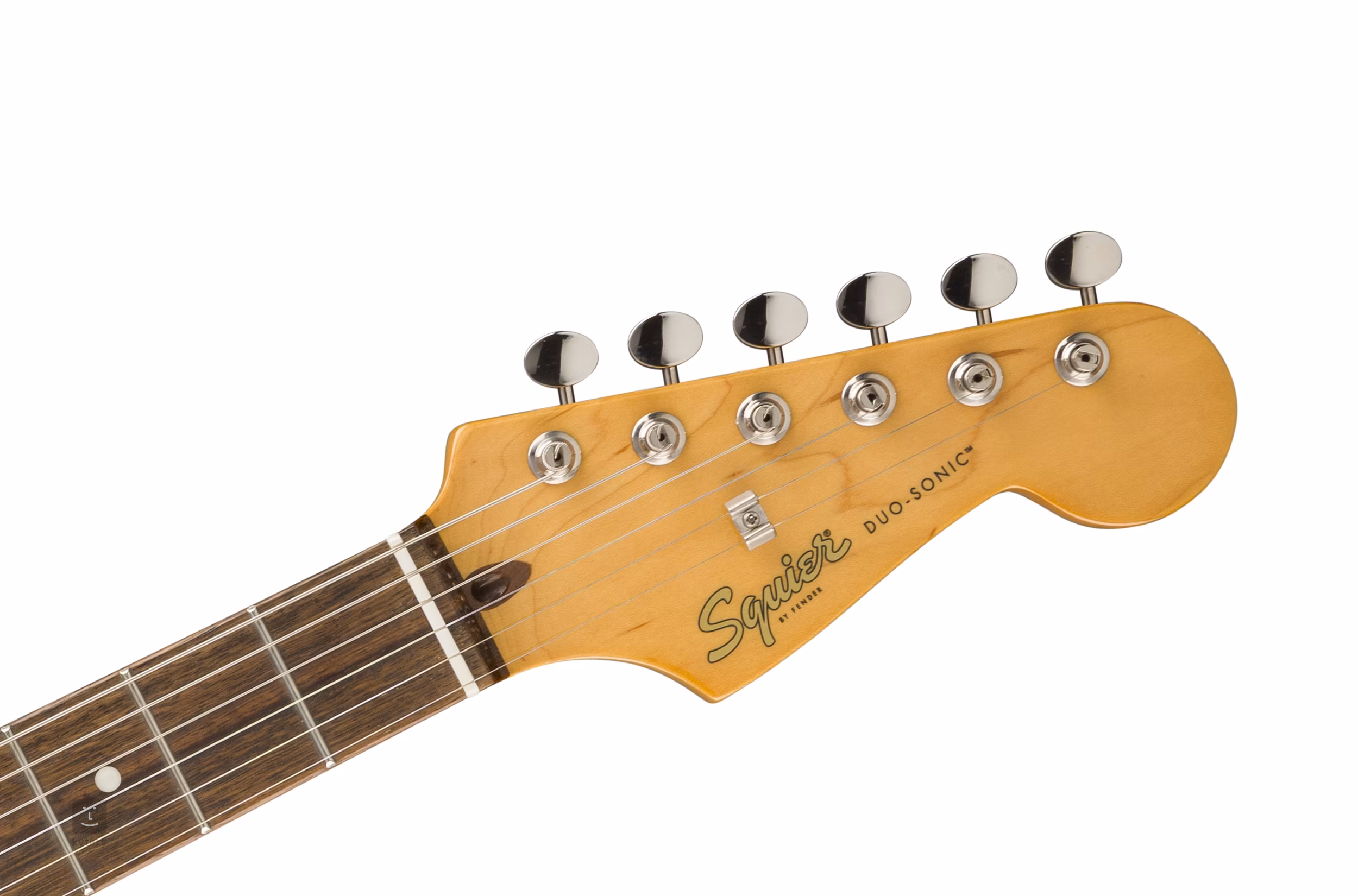 La guitare électrique Duo-Sonic a été introduite par Fender en 1956 en tant que modèle bon marché destiné principalement aux étudiants, mais elle a rapidement trouvé sa place dans les clubs de musique et chez les artistes alternatifs. Grâce à son corps plus petit et à son action courte (610 mm), elle peut être jouée très confortablement, avec énergie et, surtout, pendant longtemps.