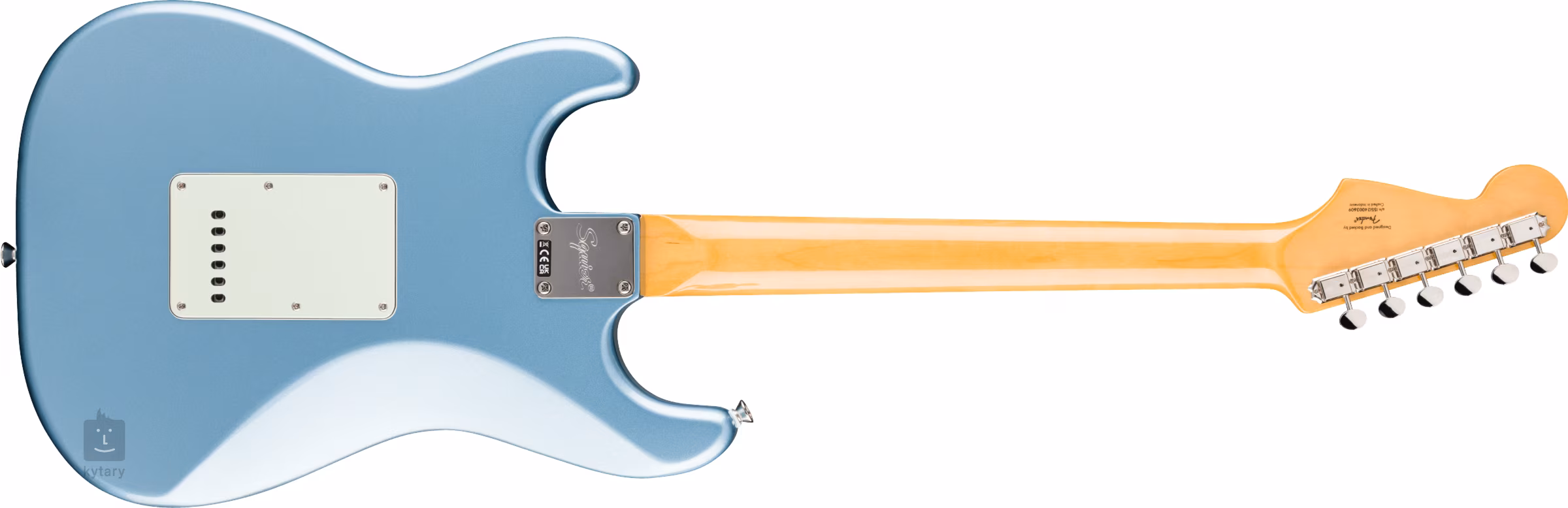 Grâce à la combinaison de trois micros propriétaires, à savoir un cobbler humbucker et deux single-coils avec aimants Alnico, la guitare offre une grande variété de couleurs sonores qui se distingueront dans une gamme tout aussi variée de styles musicaux. Les cordes sont montées dans le mécanisme de trémolo synchronisé de style vintage de l'entreprise. Le look élégant de la guitare est accentué par un pickguard à trois couches en vert menthe, un accastillage en nickel et le logo Squier by Fender sur la tête de la guitare.