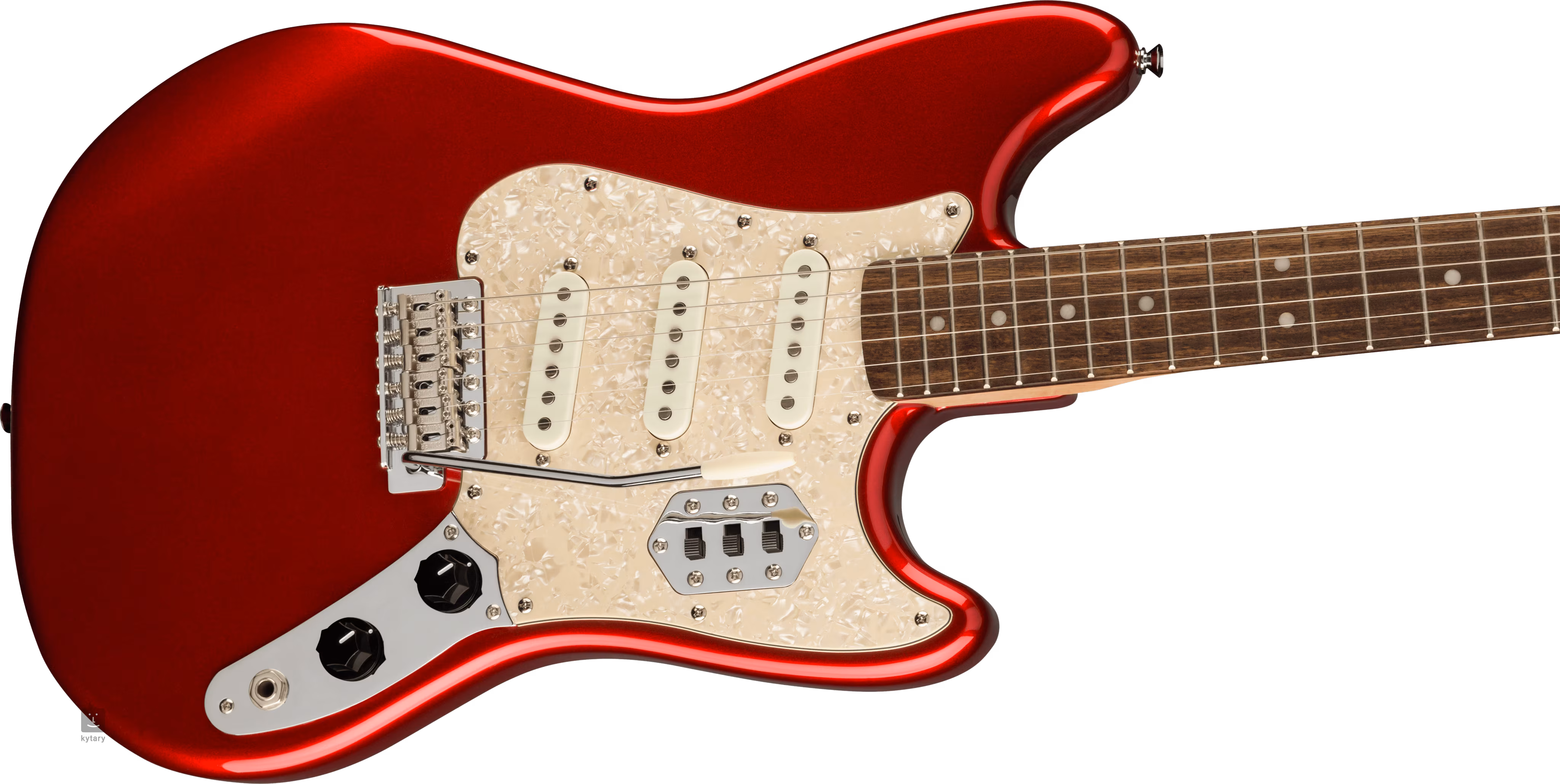 La guitare électrique Paranormal Cyclone est un hybride de plusieurs modeles Fender familiers : le corps décalé plus petit de la Mustang, les micros et le trémolo synchronisé vintage de la Stratocaster, et les commandes de la Jaguar.