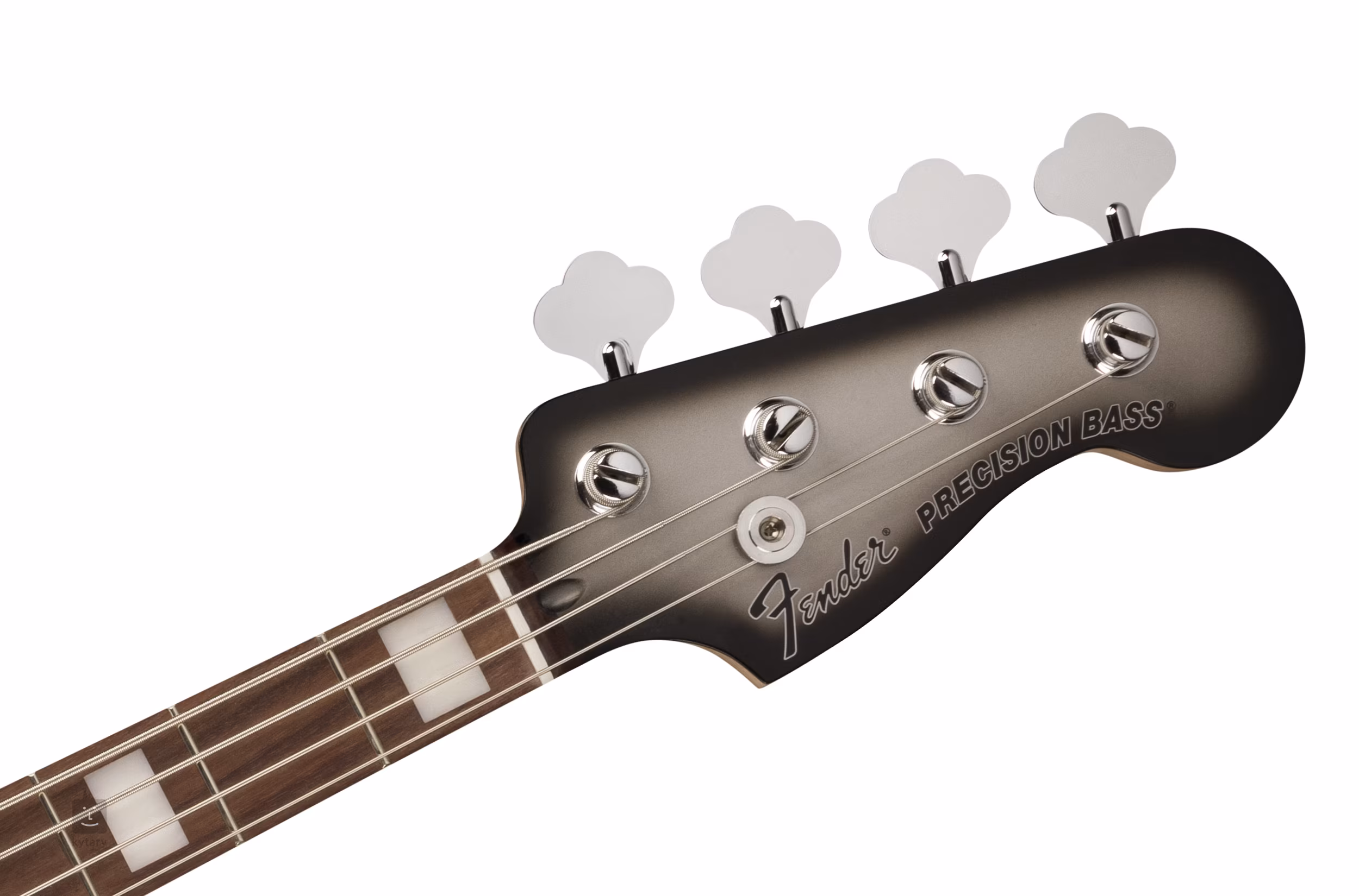 L'avant de la tête est recouvert d'une laque Silverburst assortie et ornée d'un logo Fender de style années 70, tandis que l'arrière porte la signature de Troy Sanders et la plaque de manche le logo de l'album "Remission". Avec une clarté nette et une puissance titanesque, la Troy Sanders Precision Bass transmet l'agitation et la brutalité sonores caractéristiques de Mastodon - directement dans vos mains.
