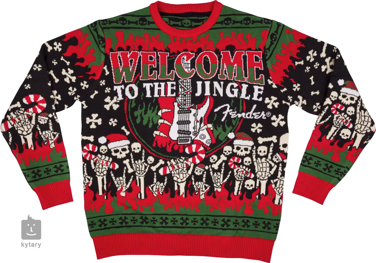 "Welcome to the Jingle" Ugly Christmas Sweater 2024 paraphrase avec humour la célèbre chanson de Guns N' Roses et perpétue en même temps la tradition des pulls de Noël "moches" de Fender, que les rockers et les rockeuses, les plus âgés comme les plus jeunes, reçoivent sous le sapin de Noël avec un sourire aux lèvres. L'Ugly Christmas Sweater est fabriqué en fibres synthétiques (acrylique) et décoré de motifs tricotés sur le thème de Noël d'une manière non conventionnelle. Choisissez parmi différentes tailles.