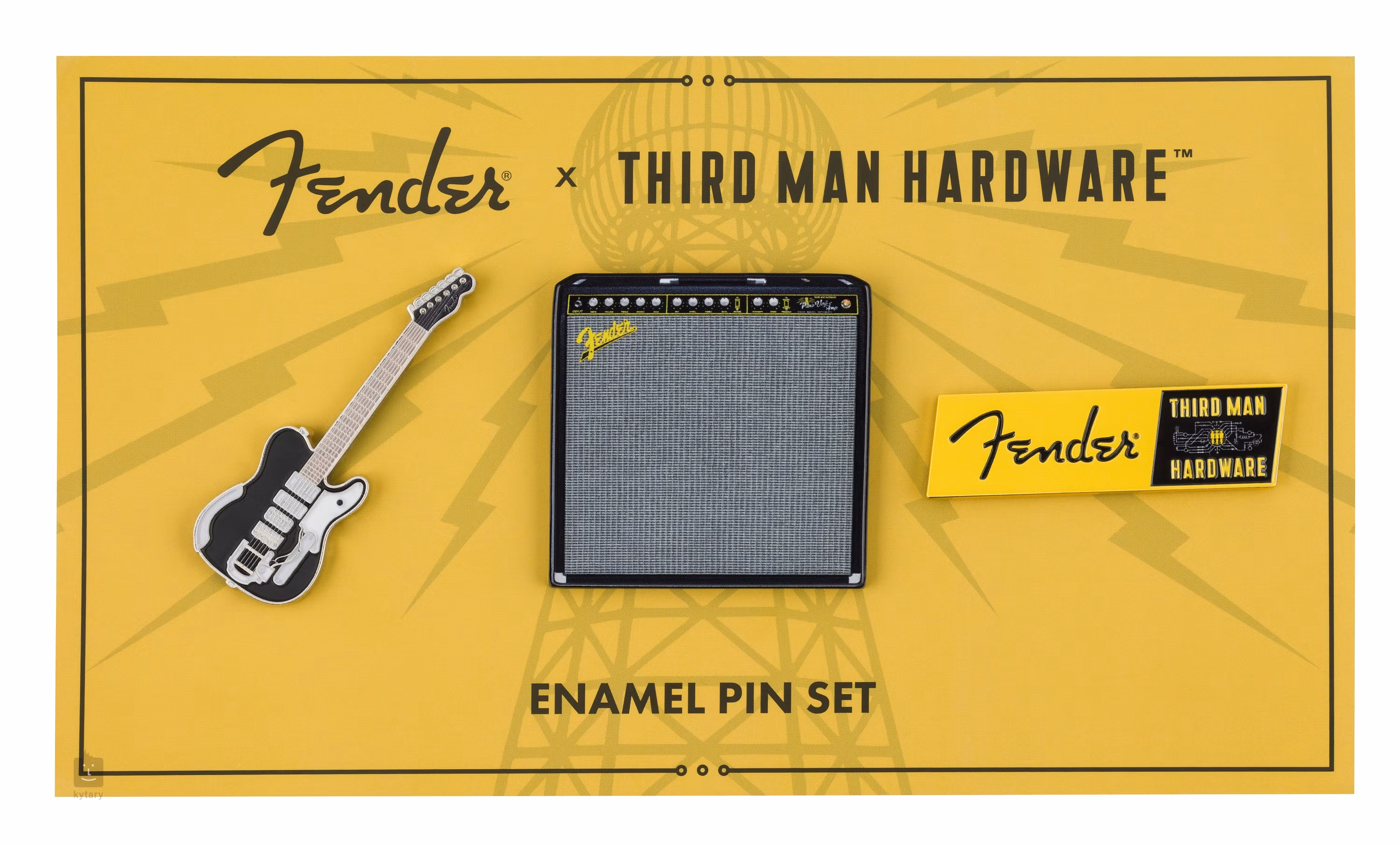 Ce set de badges apportera la synergie brute de Fender et Third Man Hardware à votre style de tous les jours. Ces badges sont conçus pour les fans qui vivent et respirent le son. Le set comprend trois badges : la guitare Triplecaster de White, un ampli Pano Verb et un badge avec le logo Fender et Third Man Hardware. Ils sont réalisés en émail de haute qualité et montés sur un support décoratif d'environ 20,3 x 12,7 cm. Les badges sont fixés à l'aide de clips en caoutchouc afin de garantir une bonne tenue.
