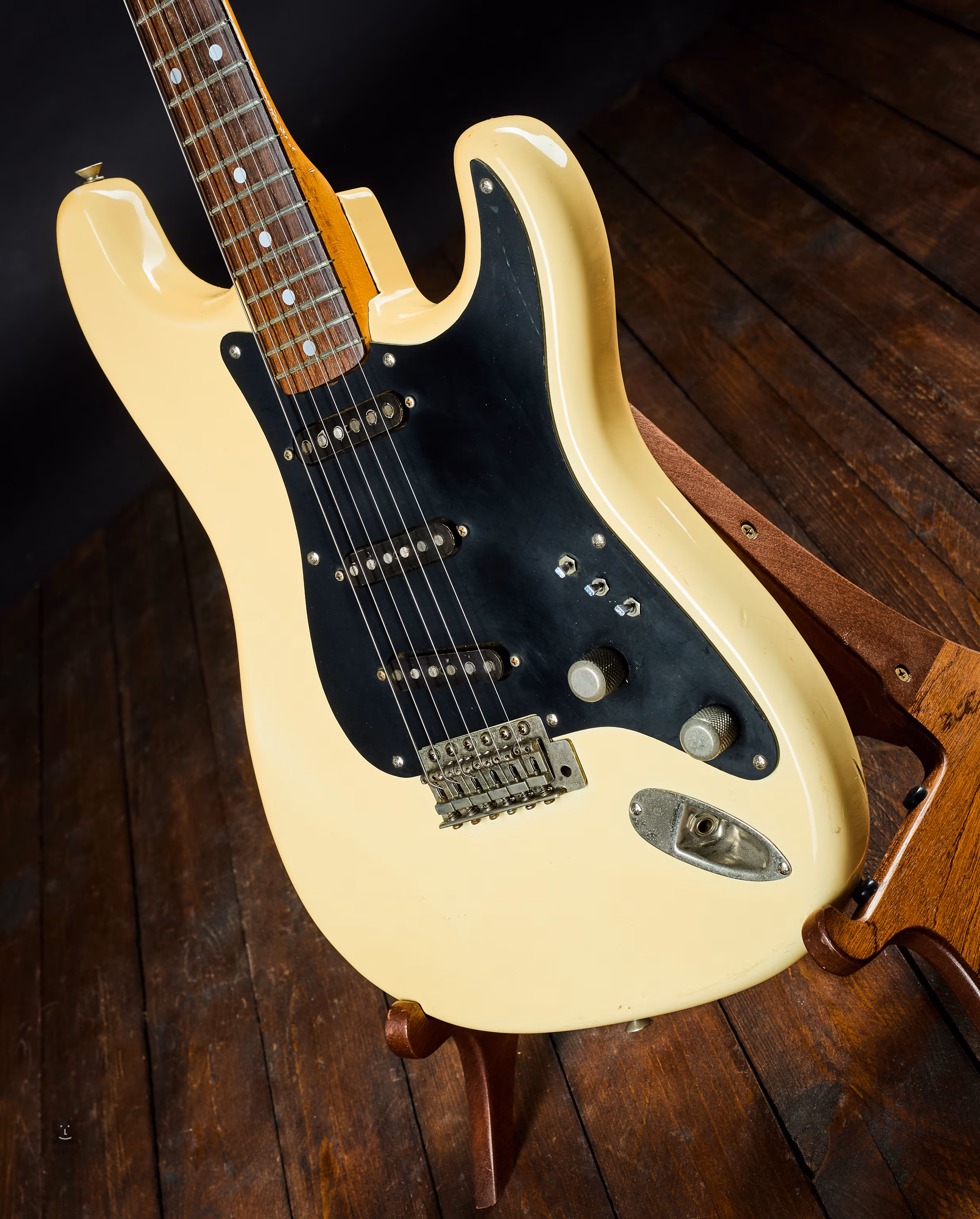 Modèle de stratocaster Lawsuit de Jeff Beck, qui aurait été fabriqué dans l'usine Tokai au Japon entre 1978 et 1980, ce qui correspond au logo "stone" de Fernandes sur le barillet. Ce modèle est caractérisé par le trio de commutateurs, qui ajoute à la variabilité sonore, les micros à gros aimants sans cache en plastique, les boutons repris de la Precision et les caractéristiques des années 60 comme la tête plus petite et le manche à profil en C.