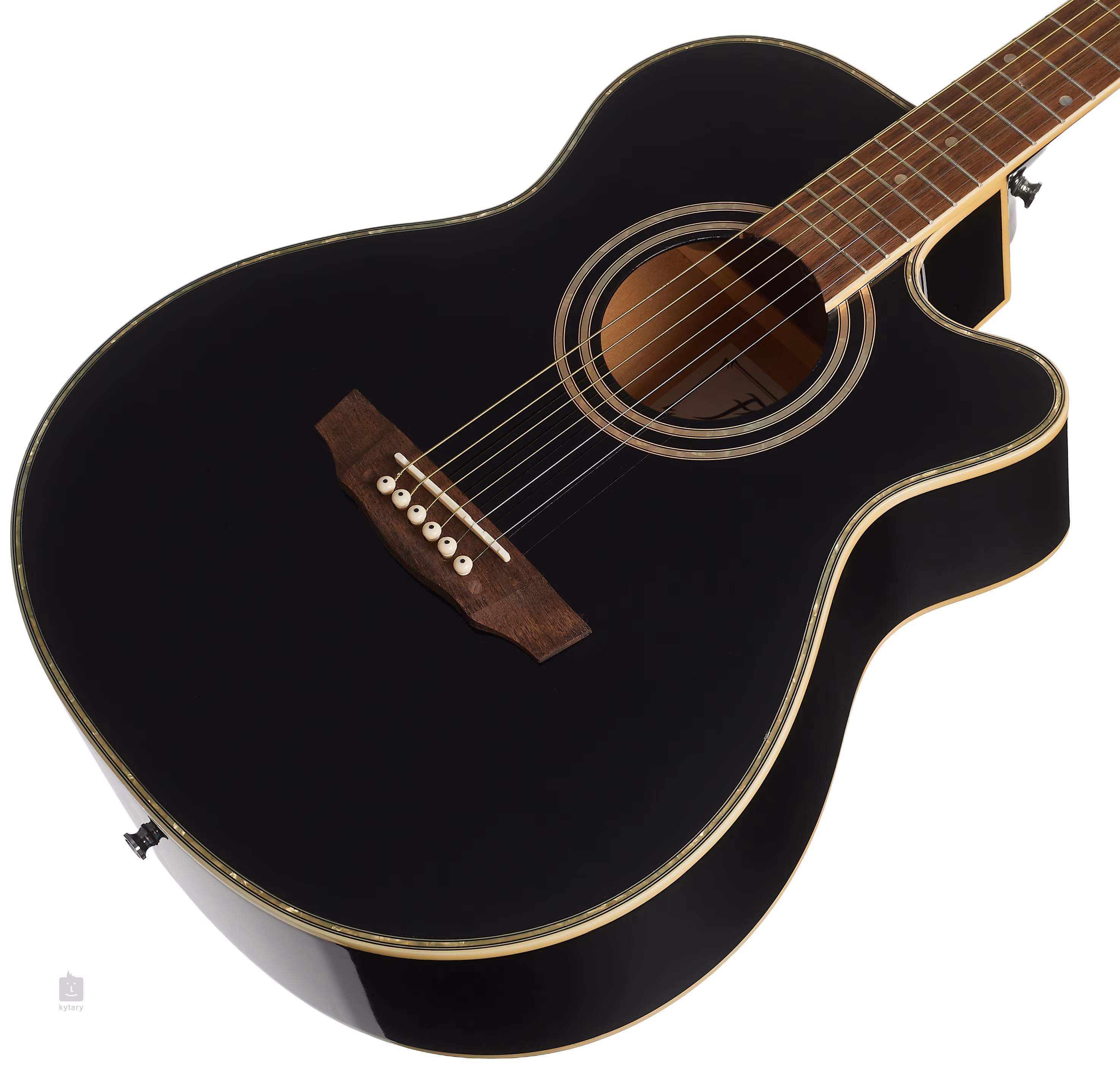 La guitare acoustique Flight F-230C BK est un instrument abordable qui convient aux joueurs débutants. Elle est dotée d'un corps stratifié avec une façade en épicéa et un dos et des éclisses en acacia, d'un manche en okoumé et d'une touche en bois de kabukalli dotée de 21 frettes. Un pan coupé dans la partie inférieure du corps facilite l'adaptation de la touche aux positions supérieures de la touche.