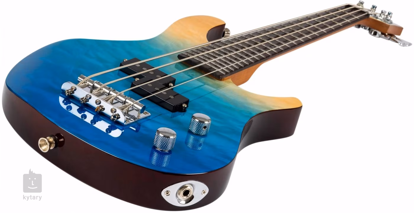 La Flight Mini Bass est une basse électrique compacte de 584 mm qui offre un accordage EADG standard, ce qui en fait un choix idéal pour les voyages ou pour jouer confortablement sur un instrument plus petit. Son corps au design moderne, sa table d'harmonie en érable piqué et sa finition laquée bleu dégradé lui confèrent une allure séduisante. Le manche en érable grillé et la touche en palissandre assurent une jouabilité confortable et une grande réponse à chaque note.