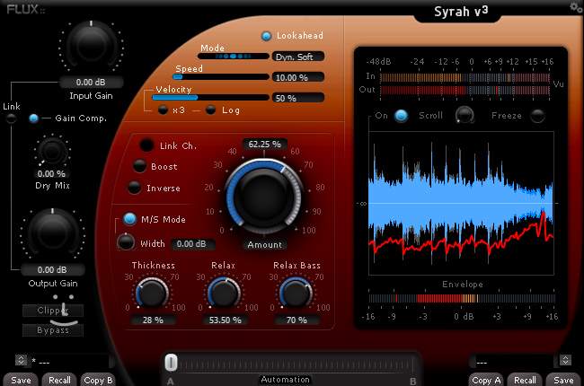 Syrah de Flux Audio est un processeur dynamique avancé conçu pour ceux qui recherchent la polyvalence, la musicalité et le contrôle intuitif pour l'enregistrement, le mixage et le mastering. La technologie sous-jacente est basée sur les algorithmes primés des instruments Alchemist et Syrah, offrant une compression adaptative supérieure qui s'ajuste automatiquement au caractère du matériel audio - qu'il s'agisse d'un instrument solo, d'un mixage complet ou d'une image stéréo.