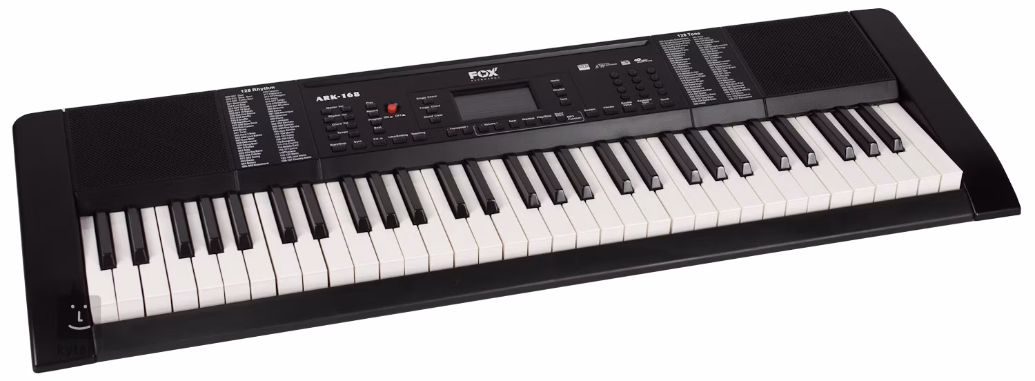 Le FOX 168 offre 61 touches de taille standard avec dynamique, 128 sons et 128 accompagnements automatiques. Il existe également des fonctions avancées telles que Split (division du clavier pour jouer deux instruments en meme temps), Dual Voice (superposition de sons) et les réglages Sustaine (réverbération) et Vibrato. Le clavier peut également etre transposé, ce que les débutants et les joueurs avancés apprécieront. Bien sur, il y a la possibilité de jouer des accords avec un seul doigt, une fonction d'enregistrement pour enregistrer vos expériences ou un métronome et un systeme de tutoriel. Vous pouvez brancher un microphone ou un appareil externe avec vos enregistrements préférés sur les touches et jouer avec eux. Grâce a la sortie MIDI, les touches peuvent également etre utilisées comme contrôleur pour les logiciels de musique.