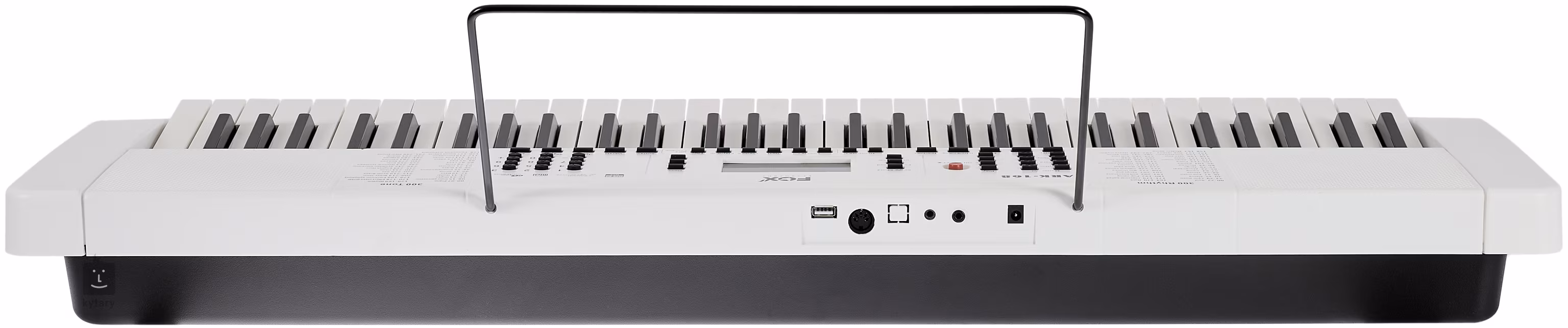 Le FOX 168 offre 61 touches de taille standard avec dynamique, 128 sons et 128 accompagnements automatiques. Il existe également des fonctions avancées telles que Split (division du clavier pour jouer deux instruments en meme temps), Dual Voice (superposition de sons) et les réglages Sustaine (réverbération) et Vibrato. Le clavier peut également etre transposé, ce que les débutants et les joueurs avancés apprécieront. Bien sur, il y a la possibilité de jouer des accords avec un seul doigt, une fonction d'enregistrement pour enregistrer vos expériences ou un métronome et un systeme de tutoriel. Vous pouvez brancher un microphone ou un appareil externe avec vos enregistrements préférés sur les touches et jouer avec eux. Grâce a la sortie MIDI, les touches peuvent également etre utilisées comme contrôleur pour les logiciels de musique.