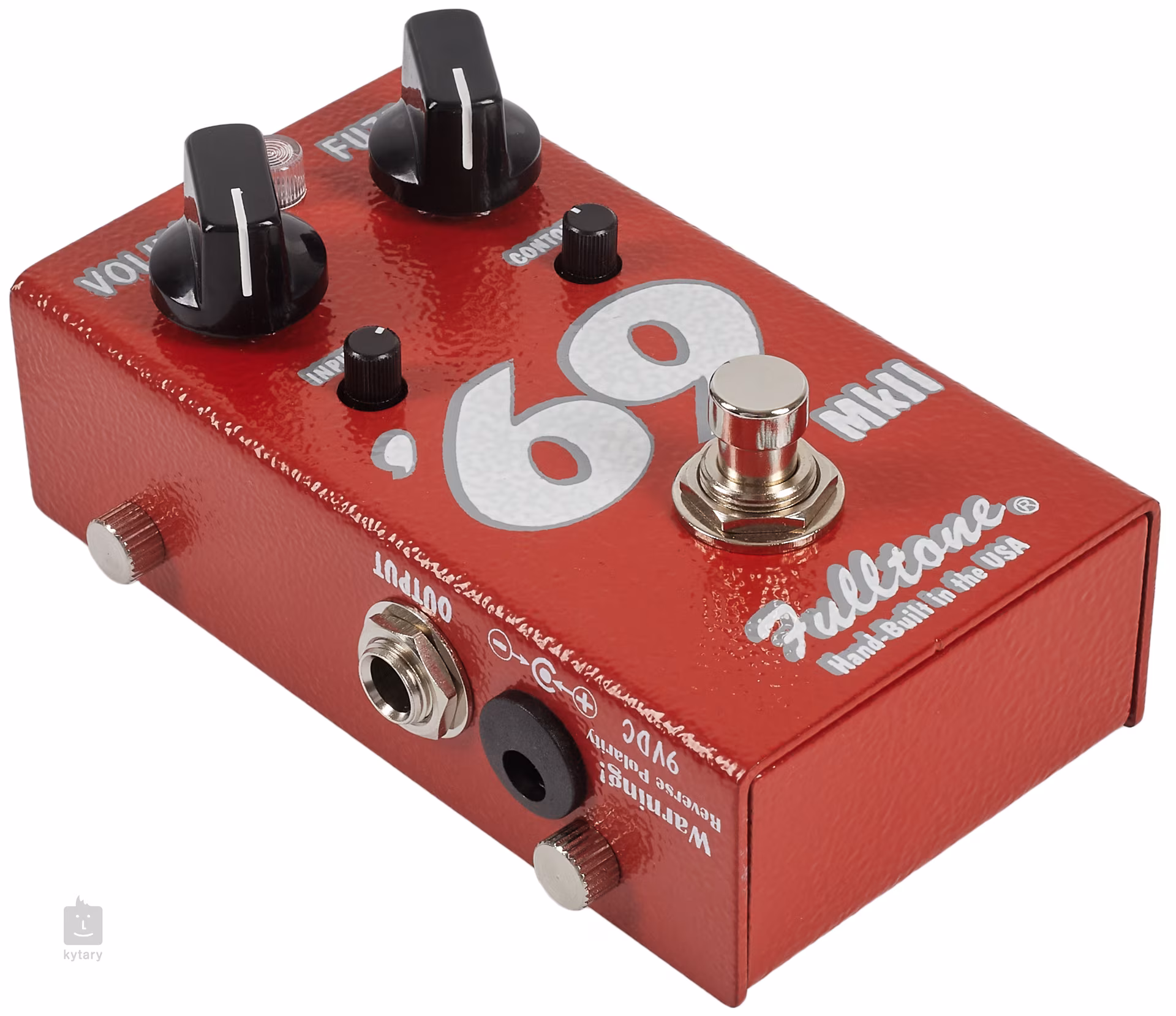 Si vous aimez les deux premiers albums de Jimi Hendrix, vous adorerez cette pédale fuzz. Une distorsion harmonique riche et un son qui se nettoie magnifiquement comme lorsque vous baissez le volume avec le potentiomètre de votre guitare en jouant sur une Fender vintage. Il s'agit de la Fulltone 69 mkII, une pédale d'effet fabriquée à la main aux Etats-Unis avec deux transistors au germanium sélectionnés pour des performances optimales.