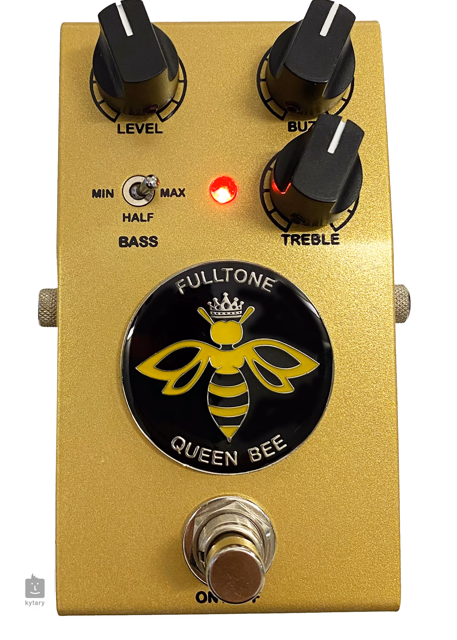 La Fulltone Queen Bee est une pédale fuzz purement analogique avec trois transistors au germanium NOS et la réponse des vraies guitares, c'est-à-dire une réponse dynamique à votre jeu et un son harmoniquement riche avec des médiums chauds et un long sustain. Avec trois transistors, la boîte vous donnera plus de distorsion fuzz et de sustain que les pédales fuzz à deux transistors, tout en produisant un bruit relativement faible par rapport aux standards des pédales à gain élevé. La section d'égalisation, sous la forme d'un contrôle passif des aigus et d'un commutateur de basses à trois positions que vous pouvez utiliser pour augmenter ou réduire les basses, vous permet d'adapter la réponse de la pédale fuzz à votre équipement de guitare. Le caractère du son peut également être modifié à l'aide du trimmer interne, qui change le réglage de la polarisation du troisième transistor.