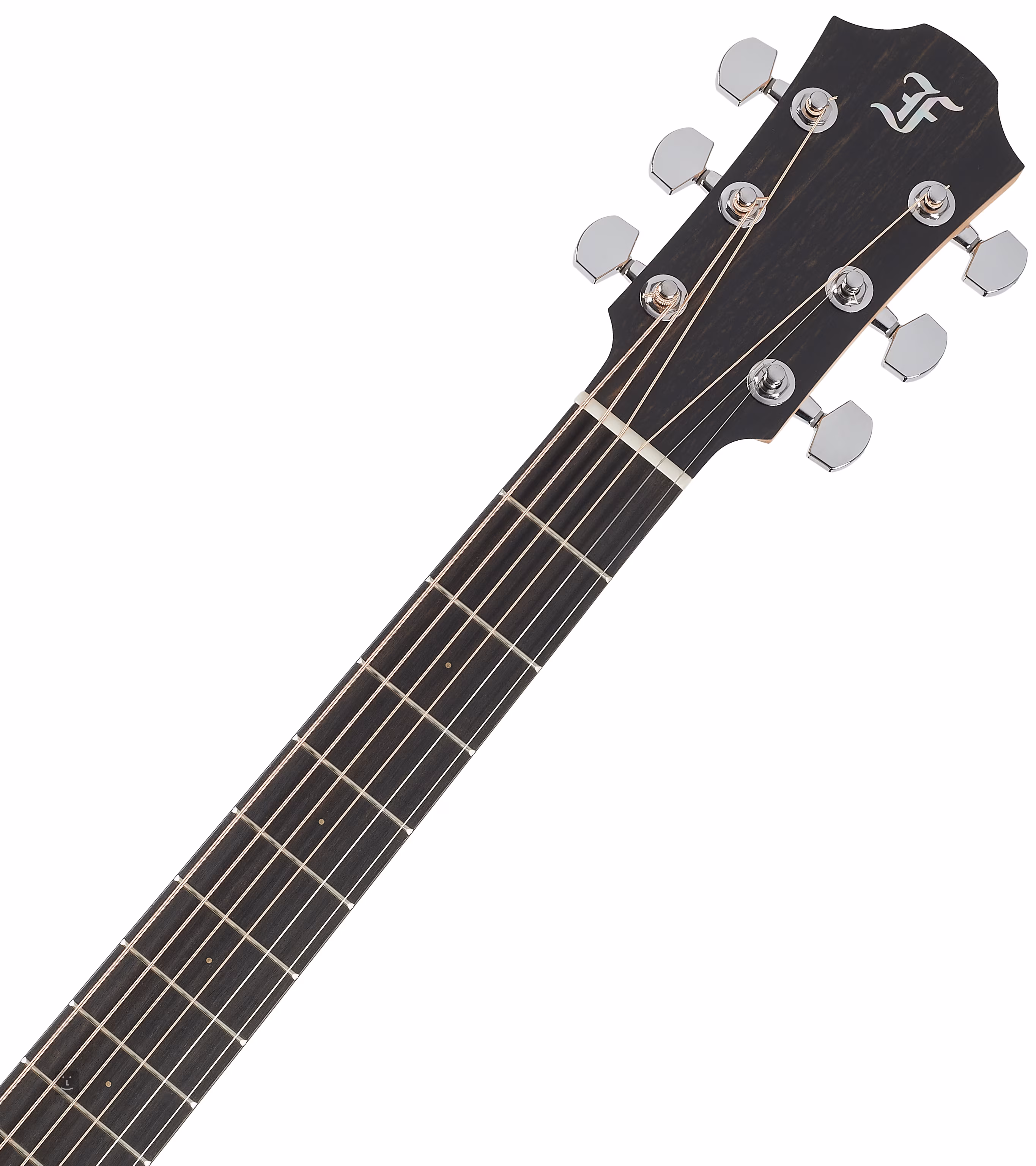 L'orientation sur la touche en ébène est facilitée par des repères de position latéraux et frontaux. Les frettes aux pieds raccourcis ne s'étendent délibérément pas jusqu'aux bords de la touche, ce qui évite qu'elles ne montent en raison de l'affaissement de la touche en cas de faible humidité. La précision et la stabilité de l'accordage sont garanties par les mécaniques chromées de l'entreprise, avec un rapport d'engrenage de 1:18.