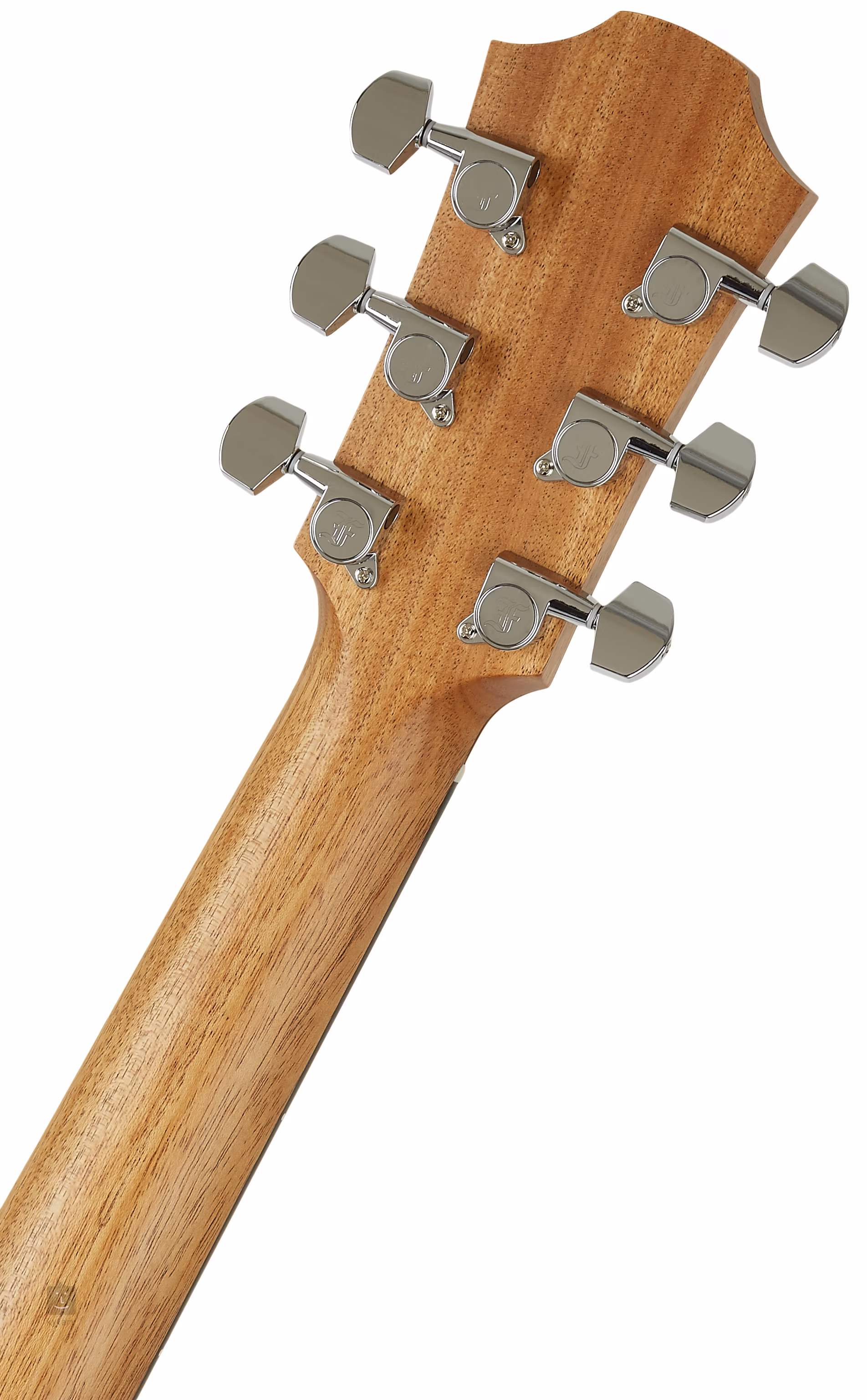 Le look des guitares Furch Blue Plus est complété de maniere appropriée par la garniture et la rosette décorative avec le pickguard en noyer noir. Le pickguard transparent fait ressortir le grain naturel du bois tout en n'affectant pas la résonance de la table d'harmonie. L'orientation sur la touche en ébene est facilitée par les reperes de position latéraux et frontaux. La mécanique d'entreprise chromée, avec un rapport de transmission de 1:18, garantit un réglage précis et stable.