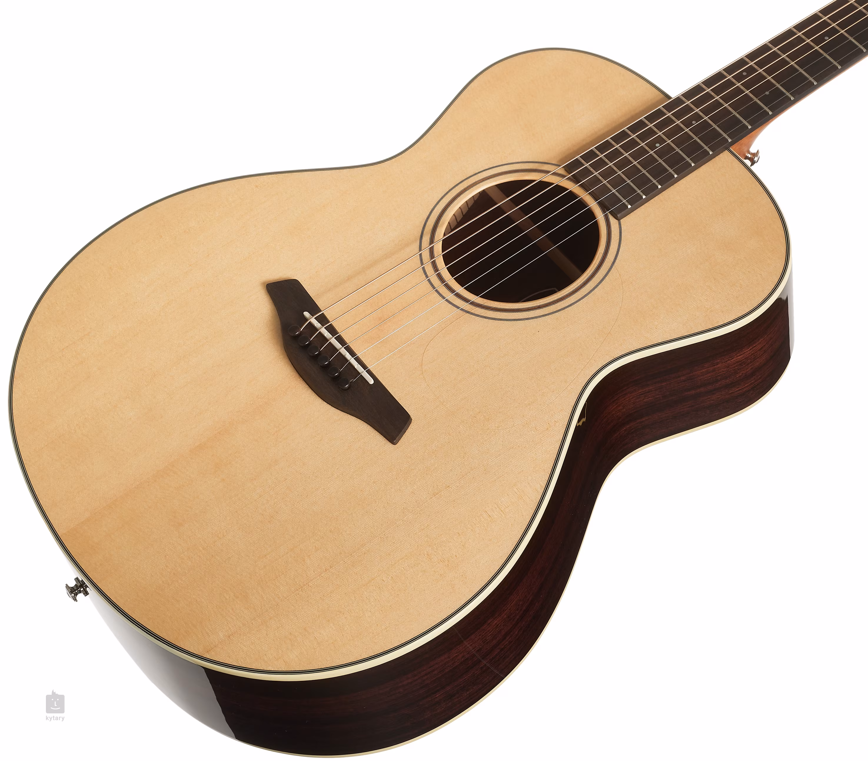 L'orientation sur la touche en ébène est facilitée par les repères perlés avant et latéraux. Le pickguard transparent laisse ressortir le grain naturel du bois sans affecter la résonance de la table d'harmonie. La précision et la stabilité de l'accordage sont garanties par des mécaniques chromées avec un rapport de 1:18. La belle facture est accentuée par une reliure imitation ivoire avec cinq couches de lignes contrastées noires et blanches et une rosace composée d'un double anneau avec incrustation en noyer.