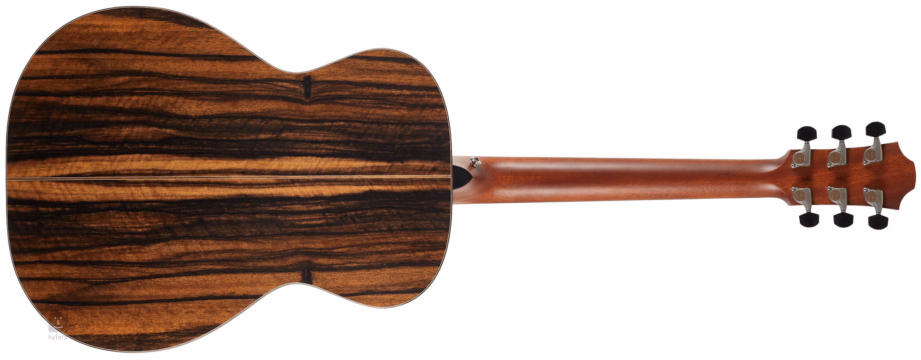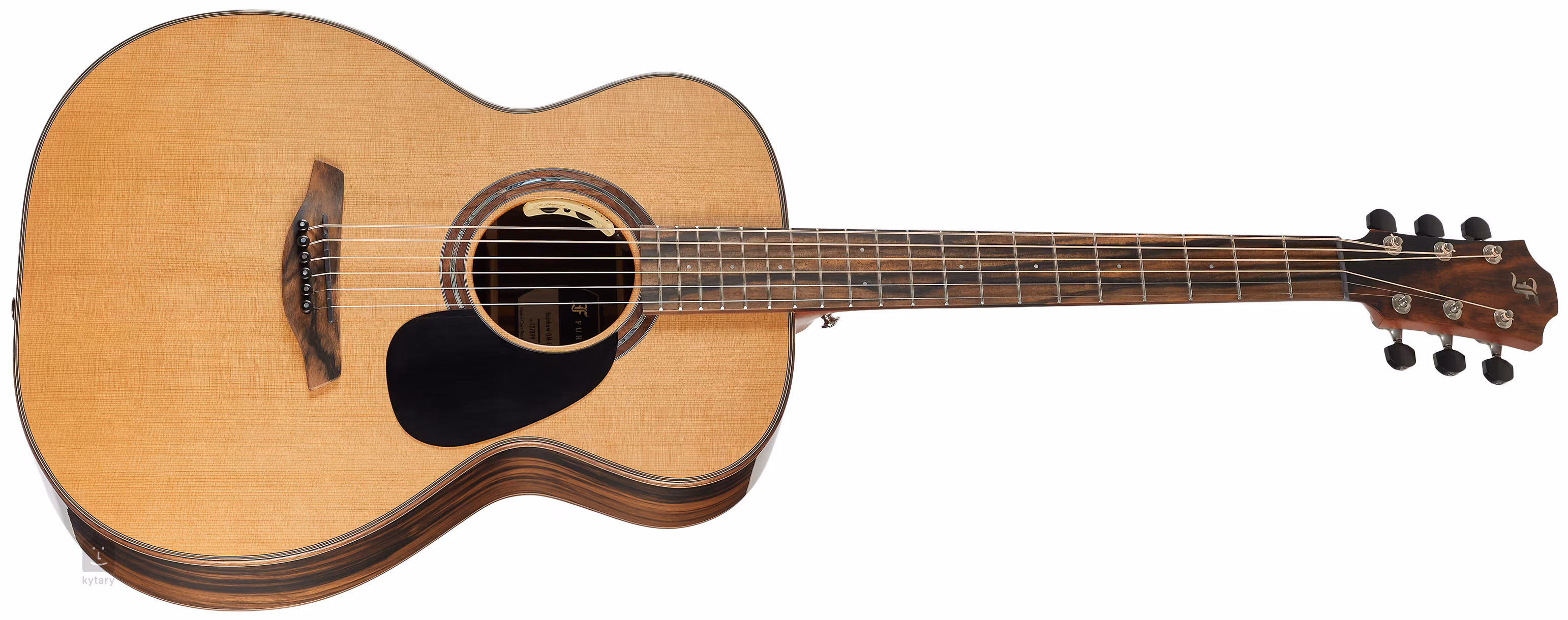 La touche et la tête sont en ébène. La surface de la touche est décorée de points de nacre. L'aspect raffiné de la guitare est accentué par la bordure du corps, la décoration de la plaque avant et la bande centrale de la plaque arrière en noyer noir, la rosace composée de noyer noir et d'anneaux de nacre, la tranche de la tête en ébène et les chevilles en ébène pour le manche avec des points de nacre. La stabilité de l'accordage est garantie par les mécaniques de haute qualité Gotoh 510 Nickel patina avec chevilles en ébène.