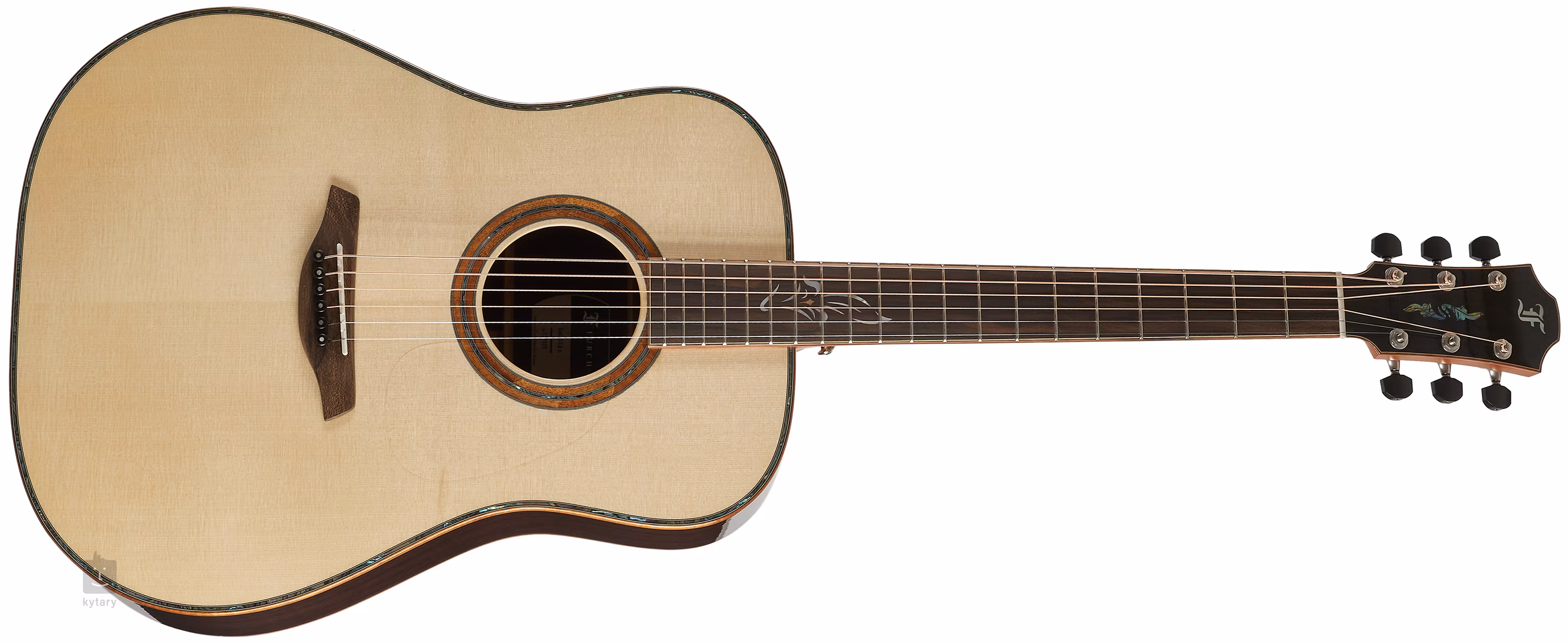 La finition satinée du manche Full-Pore Smooth-Slide Satin Finish optimise la jouabilité et permet de glisser en douceur d'un accord à l'autre. Le pickguard transparent laisse ressortir le grain naturel du bois sans affecter la résonance de la table d'harmonie. Les mécaniques haut de gamme Gotoh 510 patinées argent avec chevilles en ébène polies et rapport de 1:21 garantissent un accordage stable.