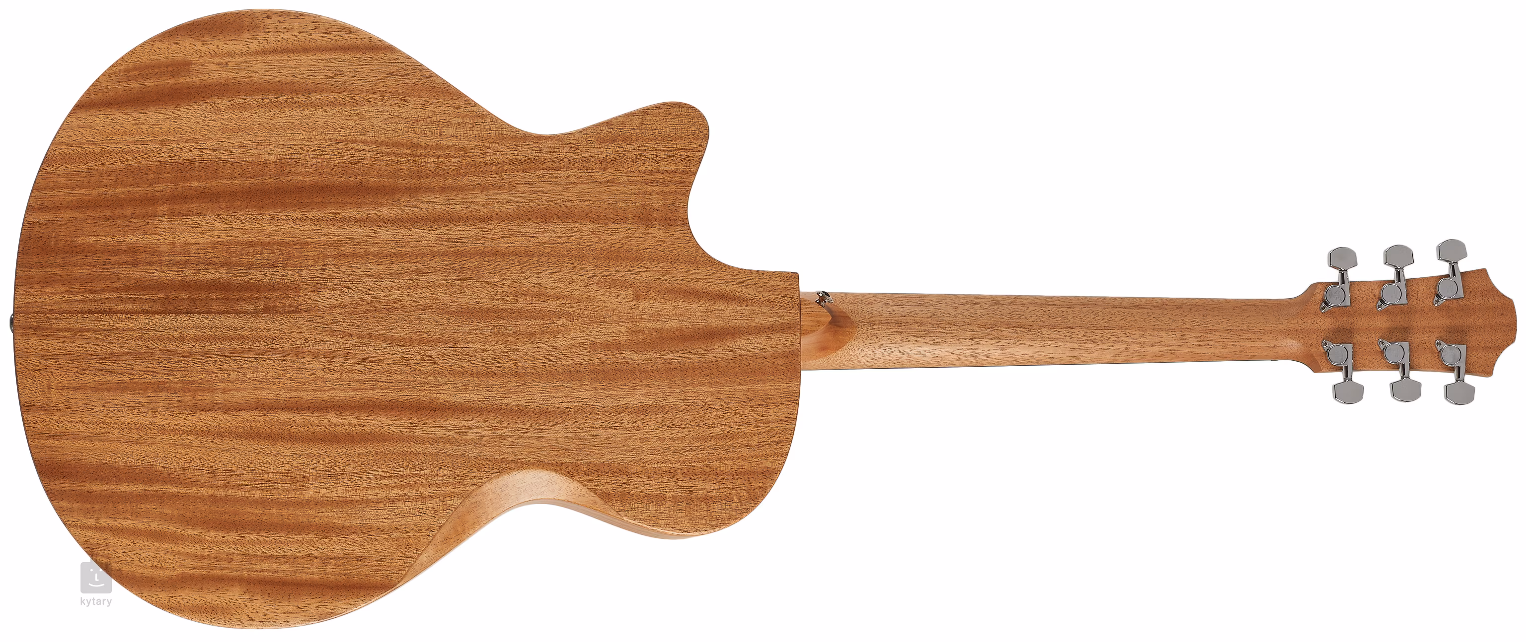 L'orientation sur la touche en ébène est facilitée par des repères linéaires latéraux. La précision et la stabilité de l'accordage sont garanties par les engrenages chromés de l'entreprise, avec un rapport de 1:18. La belle finition est mise en valeur par les garnitures périphériques du corps, le pickguard et la rosace en finition noire contrastée.