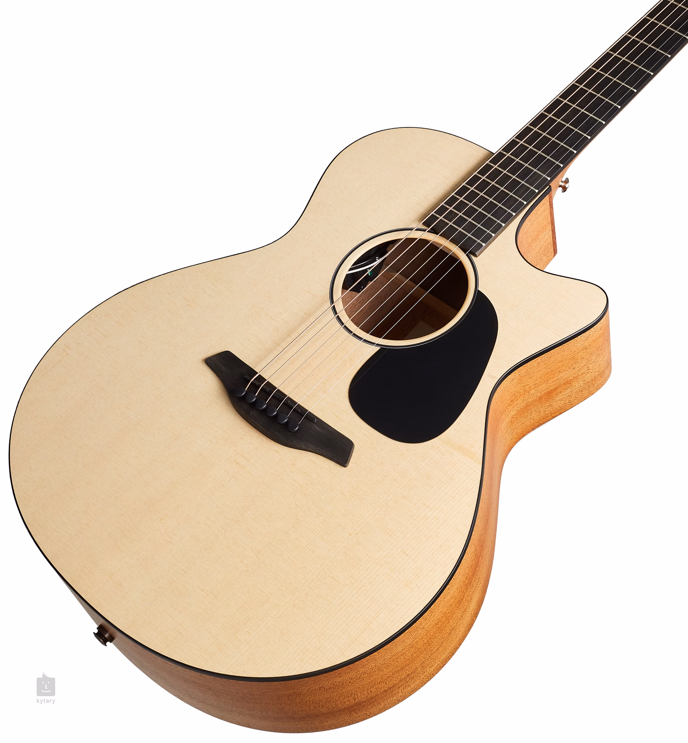 La façade du Grand Auditorium Violet Master's Choice Gc-SM est fabriquée en épicéa de Sitka massif de qualité A, tandis que le fond et les éclisses sont en acajou massif de qualité AA. La face, le fond et les éclisses sont finis avec une finition à pores ouverts qui protège l'instrument et favorise les caractéristiques sonores naturelles du bois. Les excellentes propriétés acoustiques des instruments sont renforcées par les nervures spéciales de la table d'harmonie.