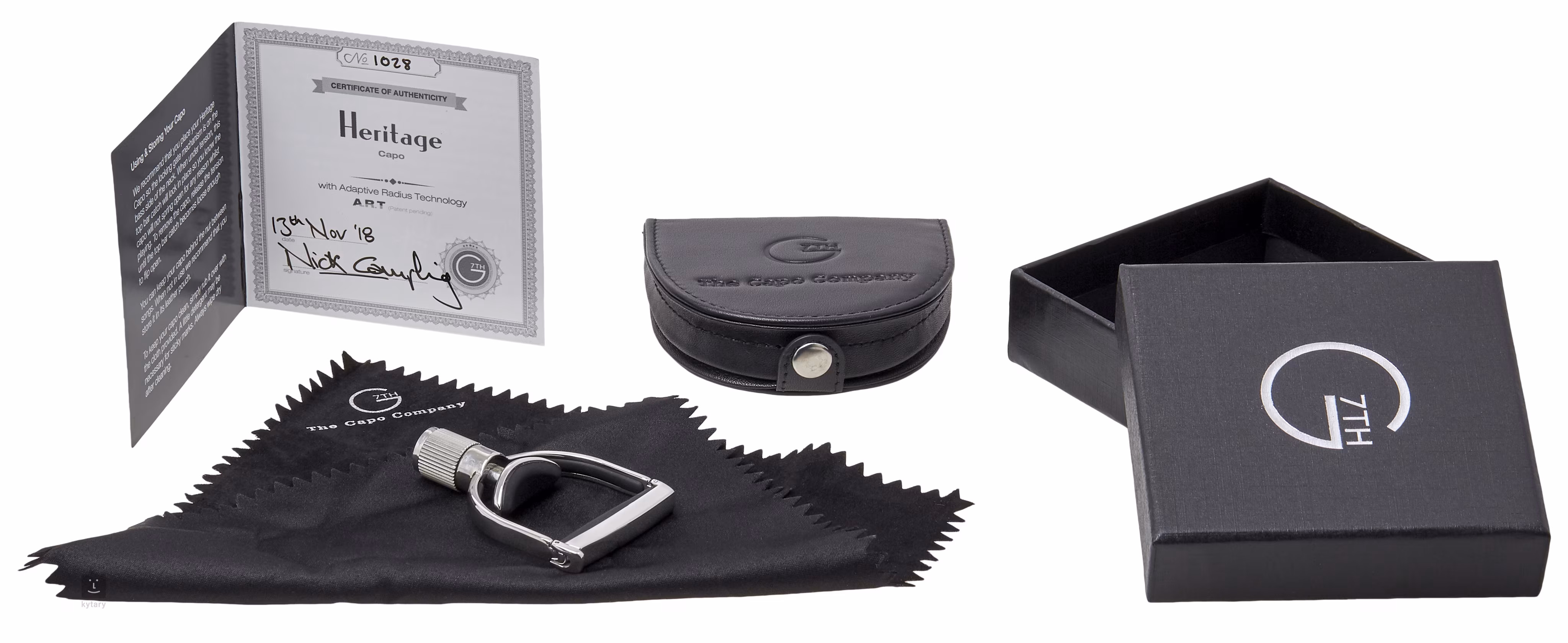 Les capodastres Heritage allient tradition et innovation. Leur construction en acier inoxydable poli à la main est dotée de la technologie A.R.T. (Adaptive Radius Technology), qui permet aux capodastre de s'adapter aux instruments de toute épaisseur et de tout profil de manche. Les parties qui entrent en contact avec le manche de la guitare sont dotées d'un insert en silicone caoutchouté pour éviter tout dommage. Le résultat est toujours une sonorité claire et chaude, sans aucun bruit sonore indésirable, et un accord stable. L'emballage comprend une pochette en cuir, un chiffon de nettoyage et une boîte cadeau.