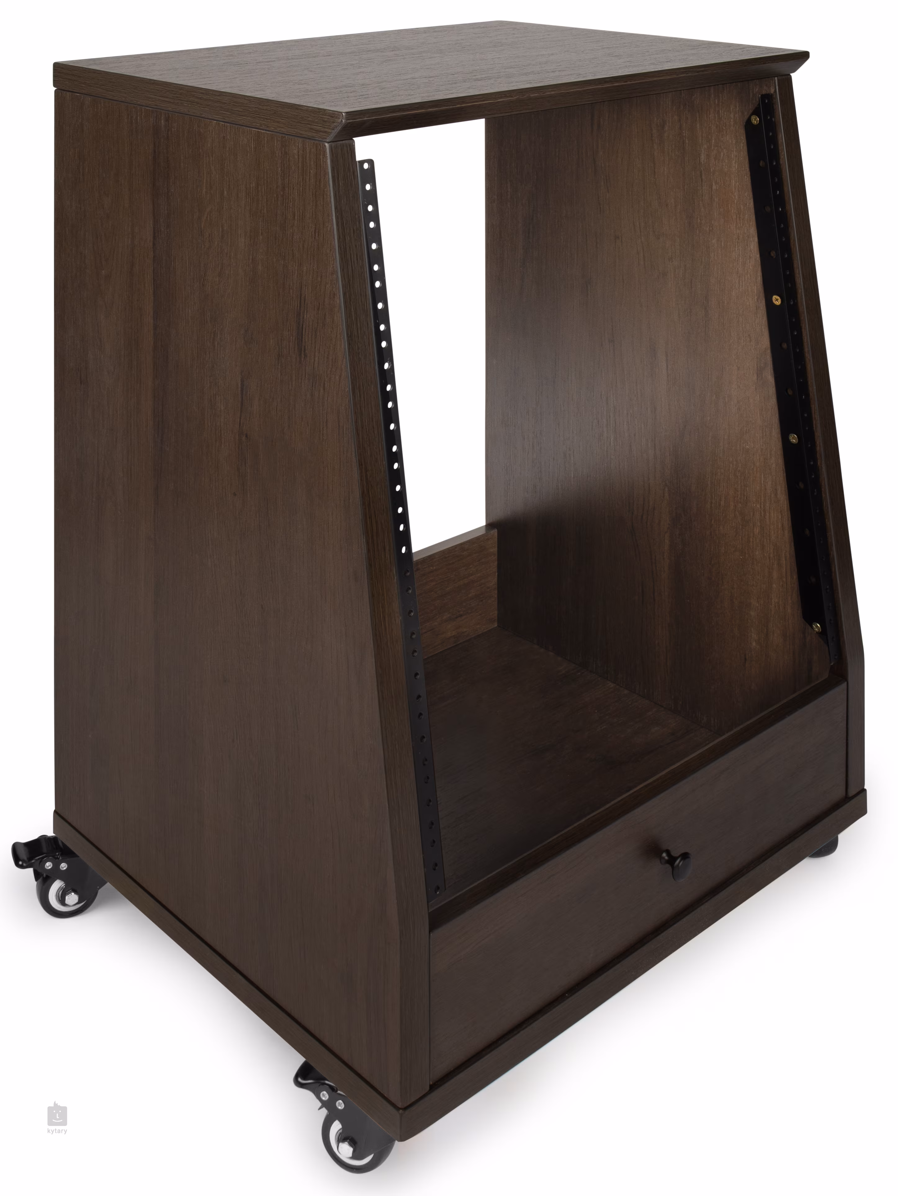 Ce rack 12U incliné est idéal pour les studios d'enregistrement et les salles de contrôle. Il offre beaucoup d'espace pour les préamplis, les interfaces audio, les processeurs d'effets et autres équipements similaires. Un compartiment de rangement pratique pour les câbles et les accessoires, situé dans la partie inférieure et doté d'un système de porte silencieux et d'un passe-câble, garantit un espace de travail propre et organisé. La surface supérieure offre un espace supplémentaire pour les interfaces audio de bureau, une petite console de mixage et d'autres équipements de production musicale.
