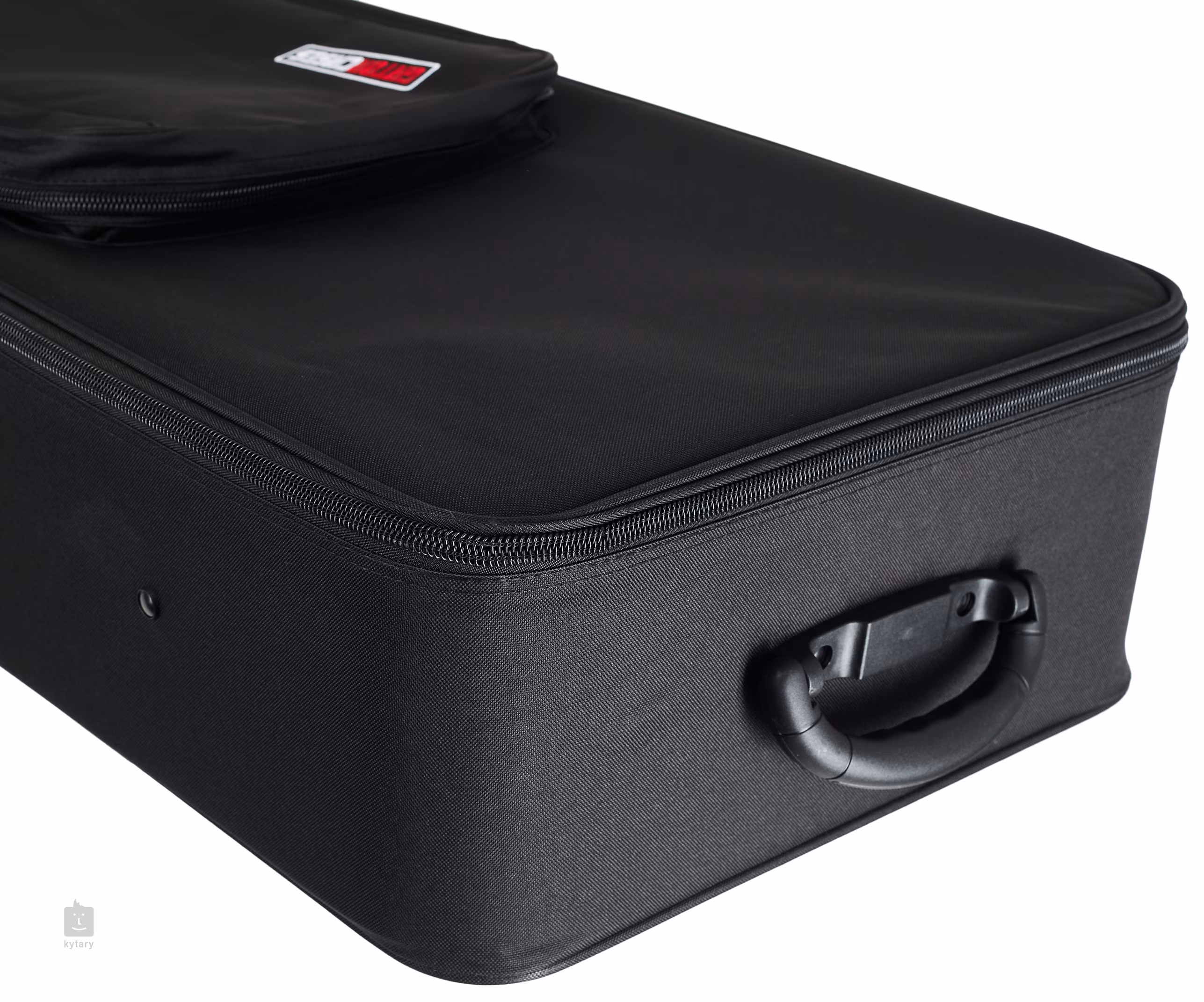 Les housses de clavier de la série Gator GK sont constituées d'un cadre renforcé de polyéthylene et de nylon. Cela offre une protection parfaite contre l'humidité et les dommages mécaniques. Les clés sont fixées a l'intérieur de l'étui par des sangles réglables et protégées par un rembourrage en mousse. Des roulettes intégrées vous permettent de manipuler facilement l'instrument et, bien sur, il y a aussi une poignée et une poche spacieuse pour tous les accessoires importants.