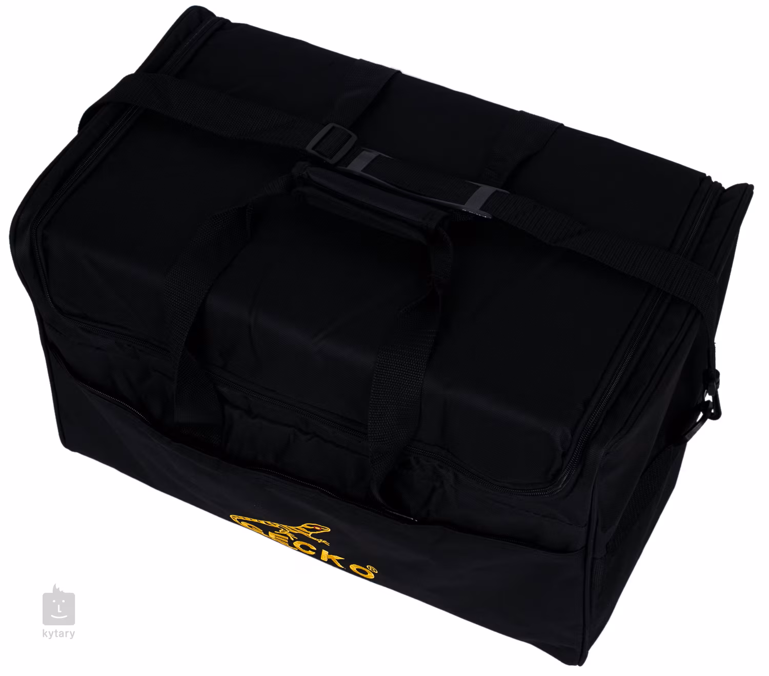 Étui en toile pour cajons Gecko avec doublure en nylon et rembourrage de 8 mm. Sur le devant, il y a une poche ouverte pour les accessoires. Il y a une poignée rembourrée et une bandouliere.