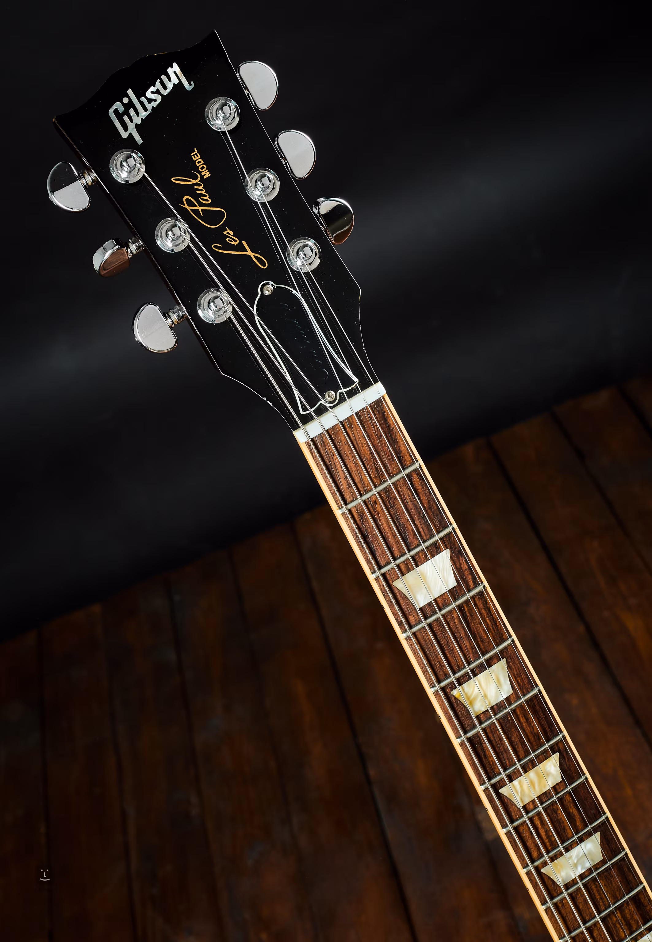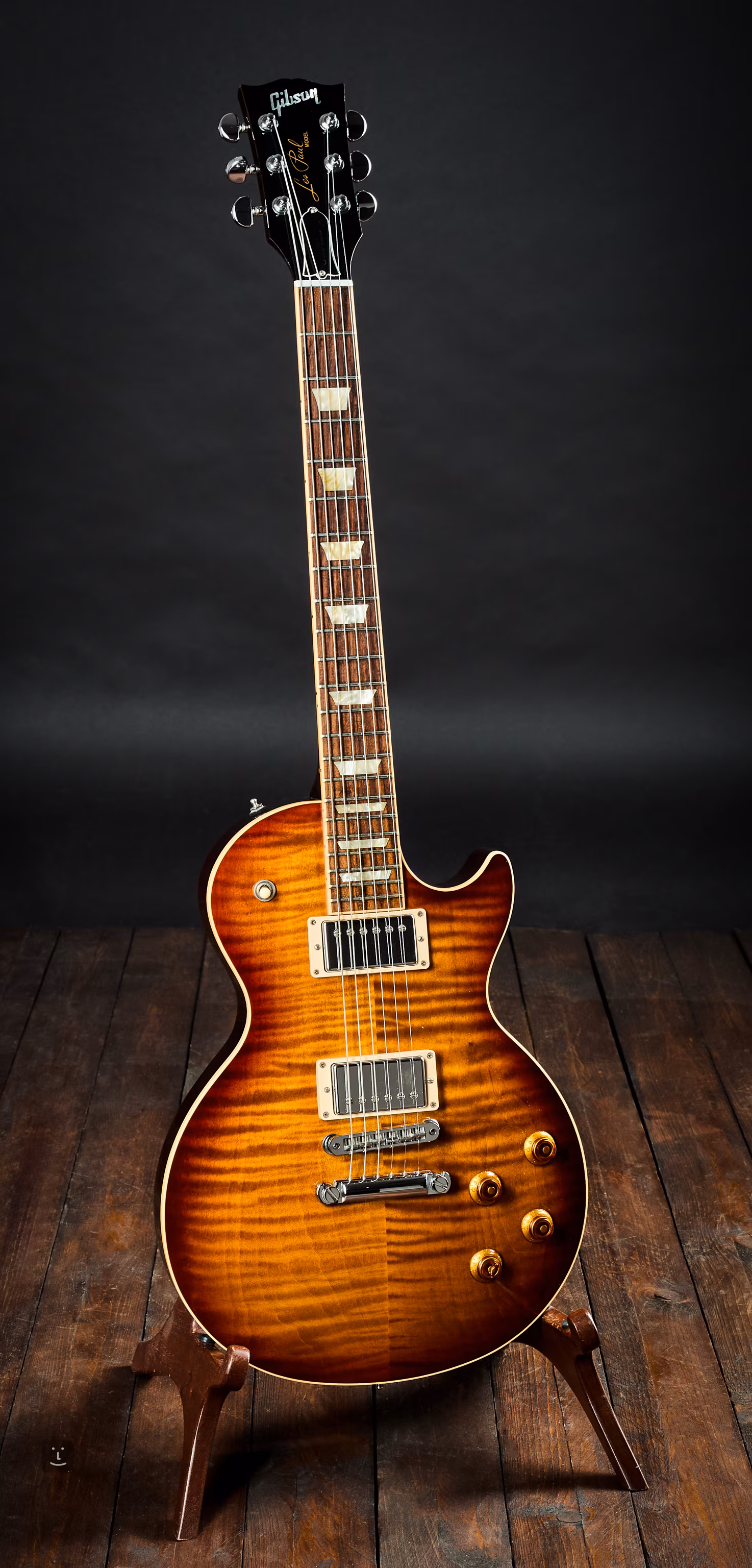 Corps en acajou avec chambrage "Modern" Weight Relieved, table en érable AAAA Figure. Les micros Gibson Burstbucker ont une option pour débrancher, de plus l'électronique offre un câblage en contre-phase et un vrai bypass, le tout grâce à des potentiomètres push-pull.