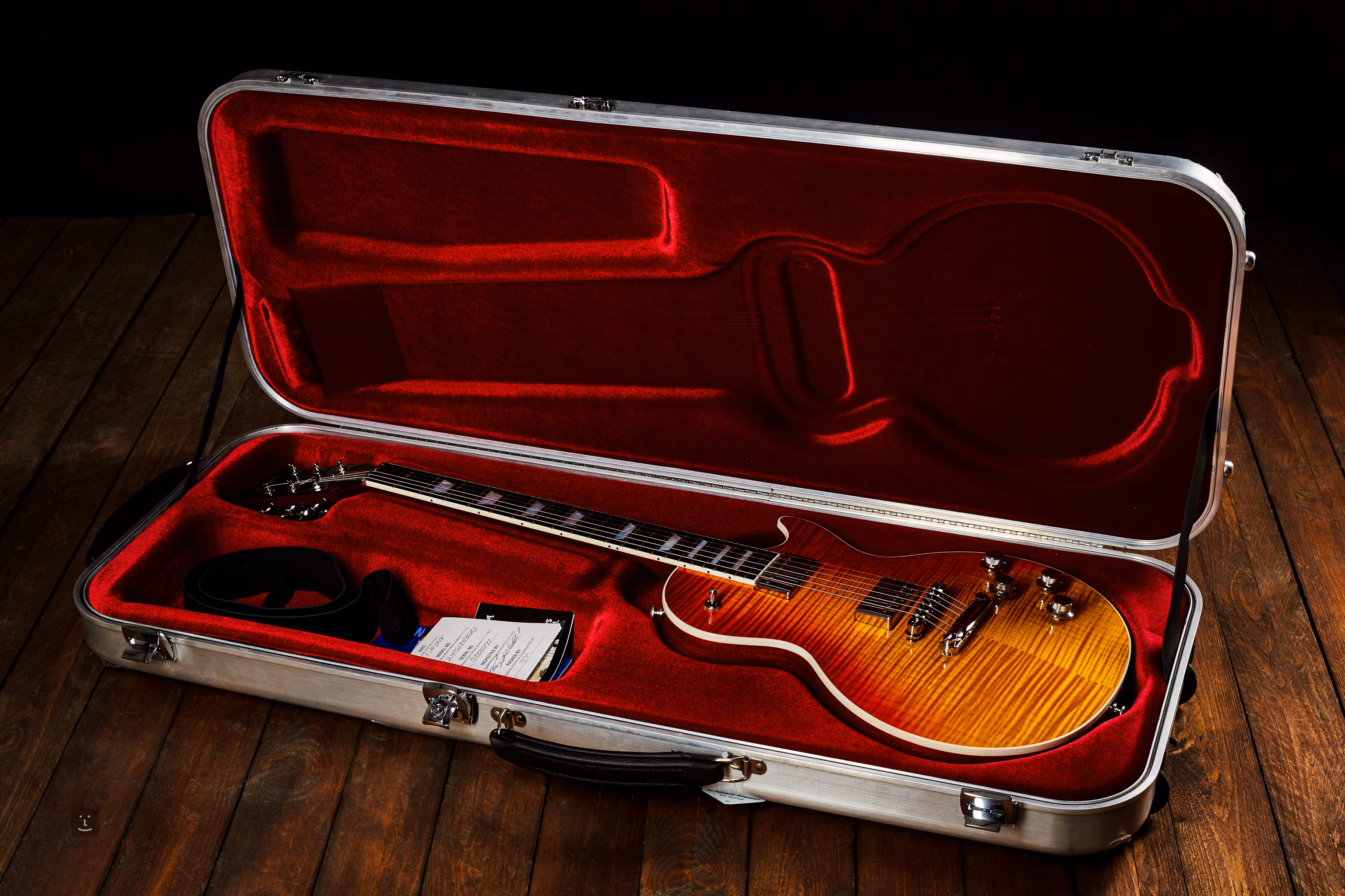 L'ensemble de la guitare est richement équipé, mais a également un look superbe, qui est particulièrement accentué par la luxueuse table d'harmonie en érable flammé AAA+. Le luxueux étui à roulettes en aluminium brossé est également un ajout de bon goût.
