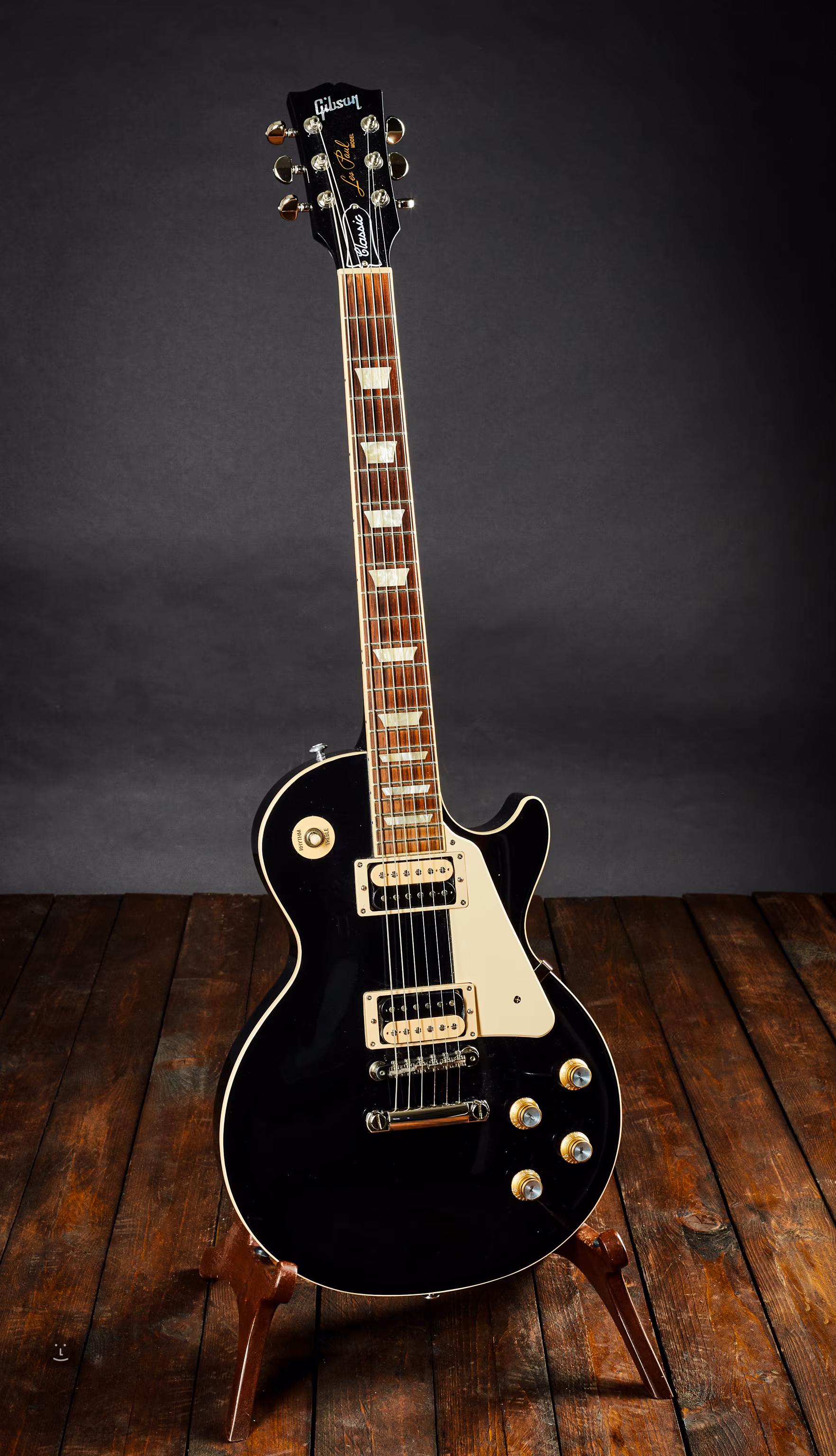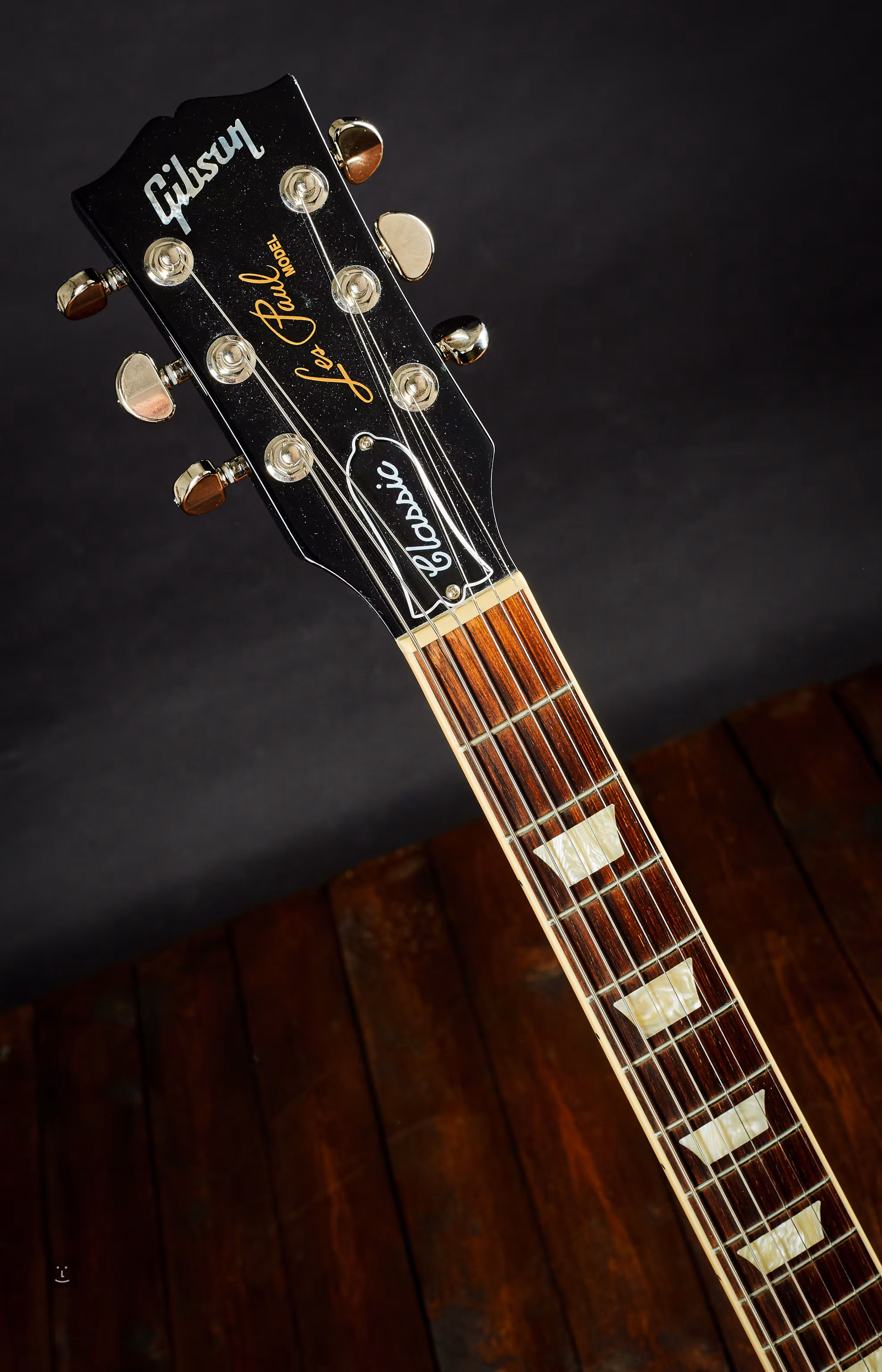 Manche en acajou avec touche en palissandre ; rayon de 12" ; 22 frettes Medium Jumbo. Le corps de cet instrument est en acajou, complété par une table en érable. Grâce aux neuf chambres de résonance du corps (traitement Traditional Weight Relief), l'instrument est légèrement plus léger que les modèles LP lourds classiques, tout en conservant le son et le toucher typiques des Les Paul. La guitare pèse 4,4 kg.