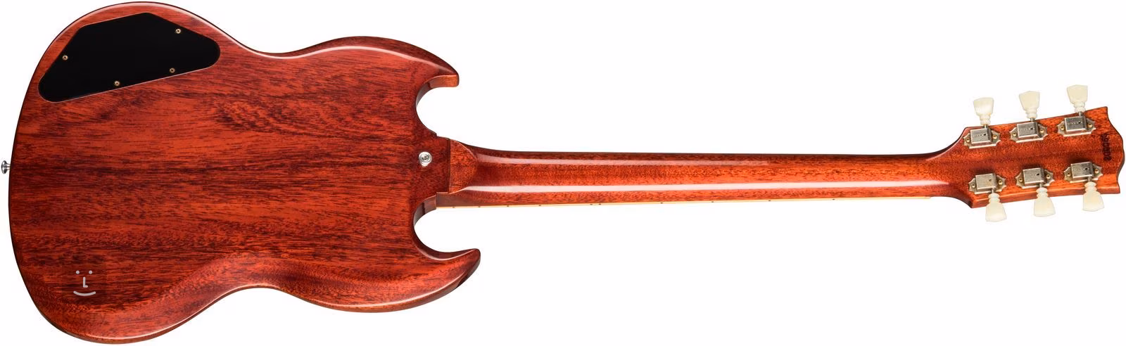 Les guitares électriques Gibson SG font partie des icônes immortelles de la musique rock. Les noms de légendes de la guitare comme Carlos Santana, Pete Townsend et d'autres grands du rock sont associés à leur son. Les noms de légendes de la guitare comme Carlos Santana, Pete Townsend et d'autres grands noms du rock sont associés à leur son. La SG Standard Reissue w/ Maestro Vibrola VOS Cherry Red de 1964 est un modèle "reissue" historiquement authentique du Custom Shop de Gibson qui rappelle le design de 1964.