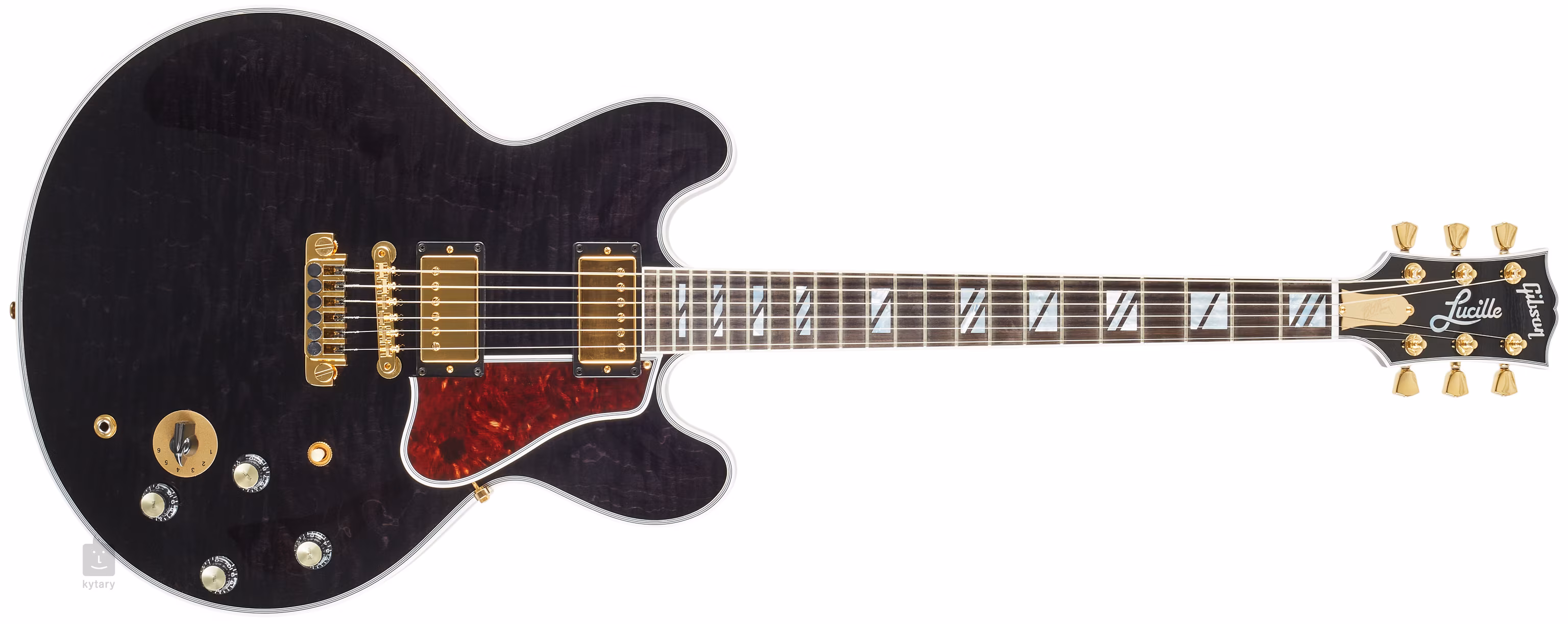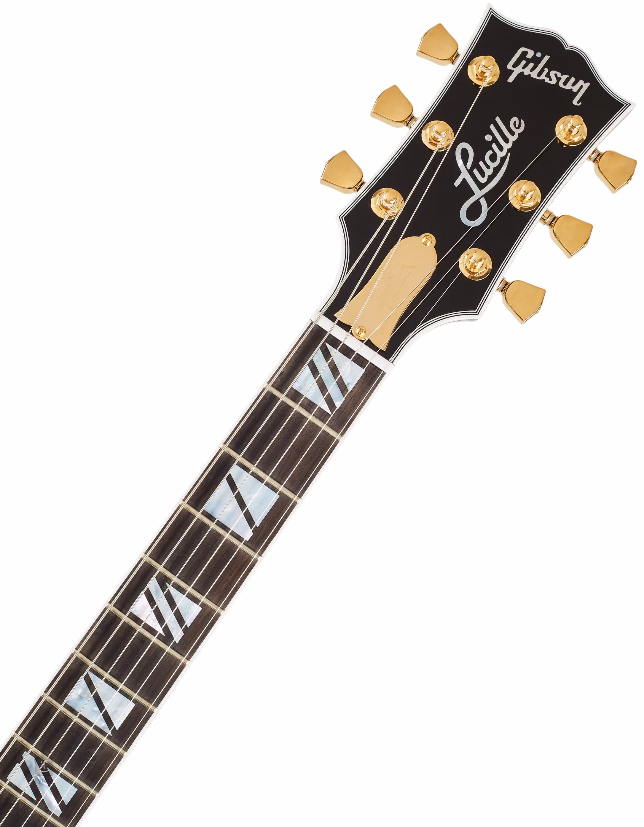La stabilité de l'accordage est assurée par la fixation des cordes via la frette zéro en pierre artificielle (Corian) dans le mécanisme Grover Tulip et via le chevalet ABR-1 dans les longerons TP-6. La finition luxueuse est accentuée par un accastillage doré comprenant un capuchon de barrage avec gravure "B.B. King", une incrustation "Lucille" en nacre sur la tête, un corps et une tête multicouches ainsi qu'un pickguard en imitation écaille de tortue.