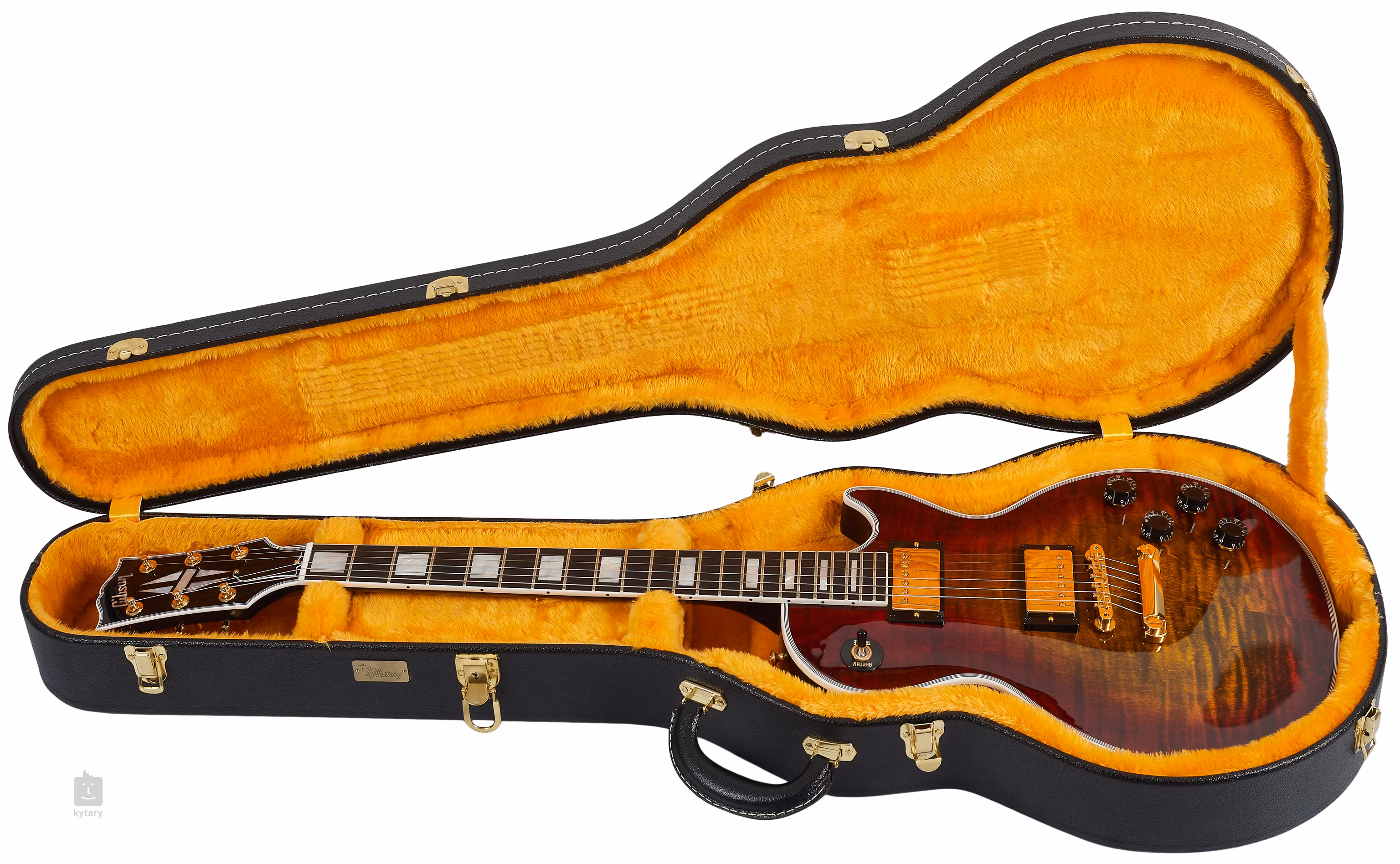 Peu de guitares électriques peuvent être considérées comme aussi classiques ou légendaires que le modèle Les Paul du fabricant américain Gibson. La Les Paul Axcess Custom Figured Top w/ Ebony Fingerboard Gloss Bengal Burst est un modèle haut de gamme du Custom Shop de Gibson.