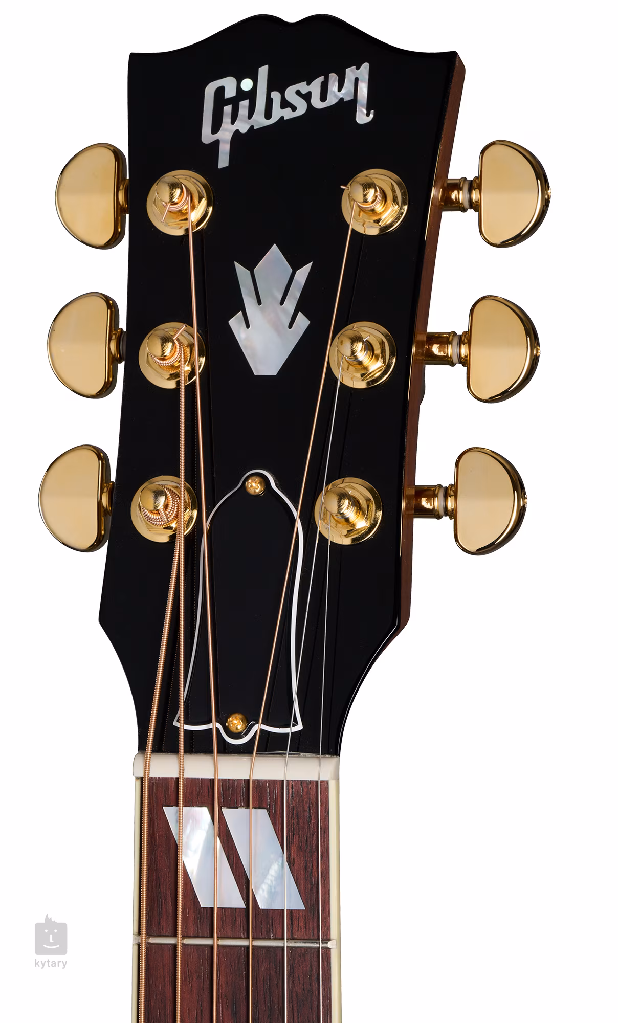 Les cordes sont montées sur des diapasons Grover Rotomatic en finition dorée, au-dessus des frettes TusQ zero et saddle et d'une touche en palissandre. L'élégance de la finition est accentuée par l'habillage périmétrique double face du corps et par le pickguard en imitation écaille de tortue au design "Hummingbird" (colibri).
